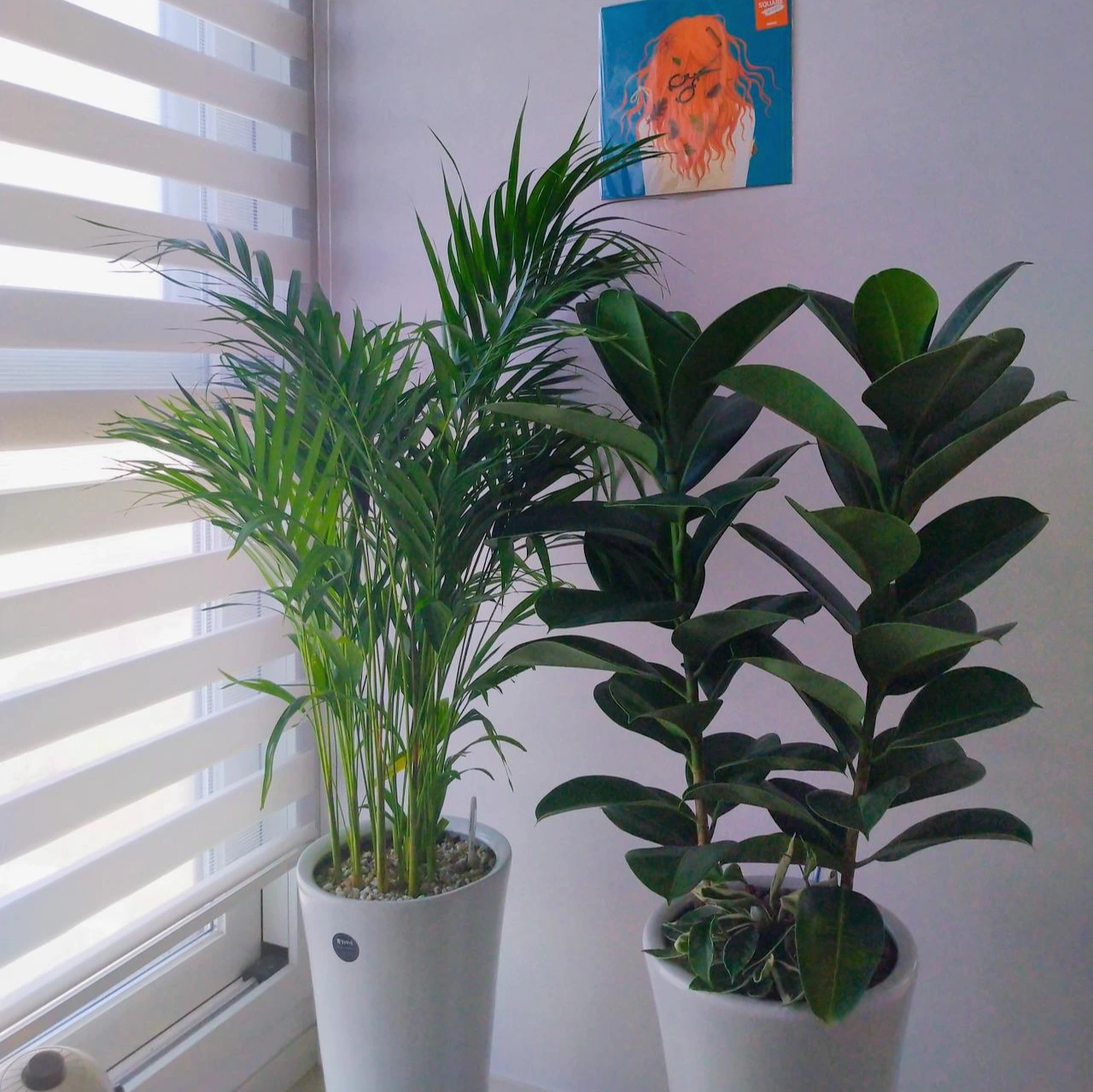 위 네 가지 조건에 충족하는 것들을 고르다 보니, 최종적으로 NASA에서 선정한 공기정화 능력이 우수한 식물이라는 아레카야자와 고무나무를 각각 들이게 되었다. 특히 아레카야자는 매일 1L의 수분을 내뿜는다는 점도 마음에 들었다. 그리고 마지막으로 식물을 찾아보던 과정 중에 너무 예뻐서.... 오로지 외모만 보고 픽한 산세베리아 문샤인까지. 그렇게 우리 집 식물 1기 라인업이 얼추 완성되었다.