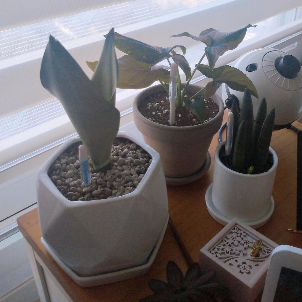 이 서스티는 화분에 꽂아두기만 하면, 필터의 색상 변화로 언제쯤 화분에 물을 줘야 할지 힌트를 주는 신통방통한 물건이었다! 일일이 화분마다 젓가락으로 찔러보며 흙이 완전히 말랐는지 아닌지 체크해야 하는 수고를 덜어줄 뿐 아니라 나같이 물 주는 주기를 까먹거나 아니면 아예 틀려서 화분을 학살하고 마는 사람들에게는 그야말로 한 줄기 빛 같은 물건이었던 것이다. 아닌 게 아니라, 내가 처음 집에 식물을 들였던 그 날부터 1년이 지난 오늘에 이르기까지 그들과 비교적 무탈하게 함께 살아올 수 있었던 것은 바로 이 서스티 덕분이라고 해도 과언이 아니다.