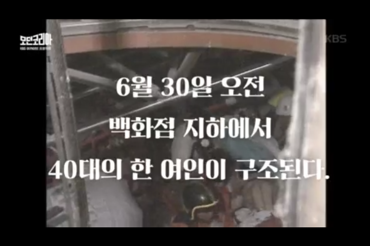 이 다큐멘터리는 곧이어 당시의 자료화면 인터뷰를 토해 당시의 사회적 분노와 비난이 온통 백화점의 경영진에 집중되어 있던 상황을 보여준다. 그 분노의 원인은 역시 당시에 널리 알려져 있던 ‘백화점 경영진들은 붕괴할 것을 미리 알고 먼저 빠져나왔다더라’는 썰이었다.