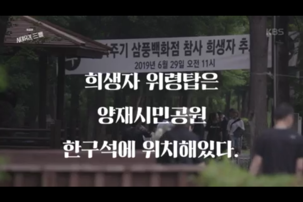 삼풍백화점 붕괴 사건은 우리 모두에게 깊은 상흔을 남겼지만, 우리는 모두 피해자였음에도, 누구에게도 우리가 받은 피해에 대한 책임을 물을 수 없었다. 우리는 거기에 묻히고, 몸이 찢기고, 위령탑에 봉인된 직접적인 피해자와 그 유가족이 아니었기 때문이다.