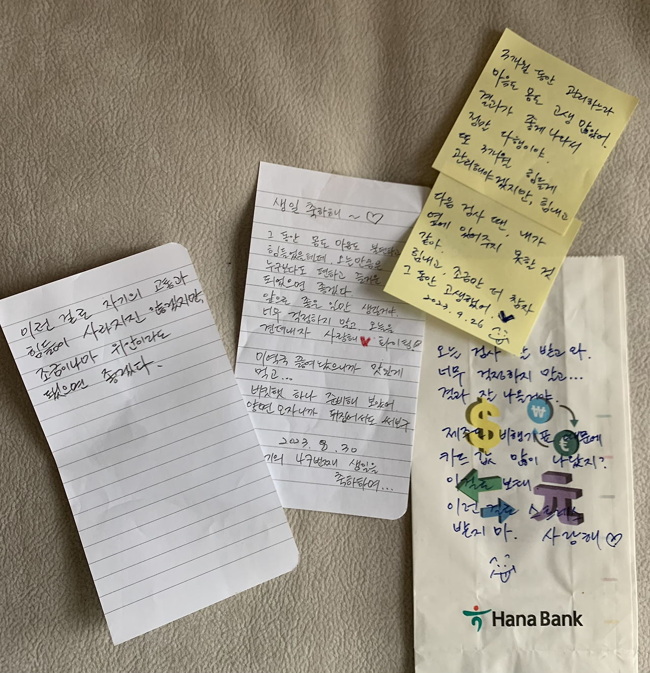 - 남편이 출근 전 식탁에 남겼던 편지들