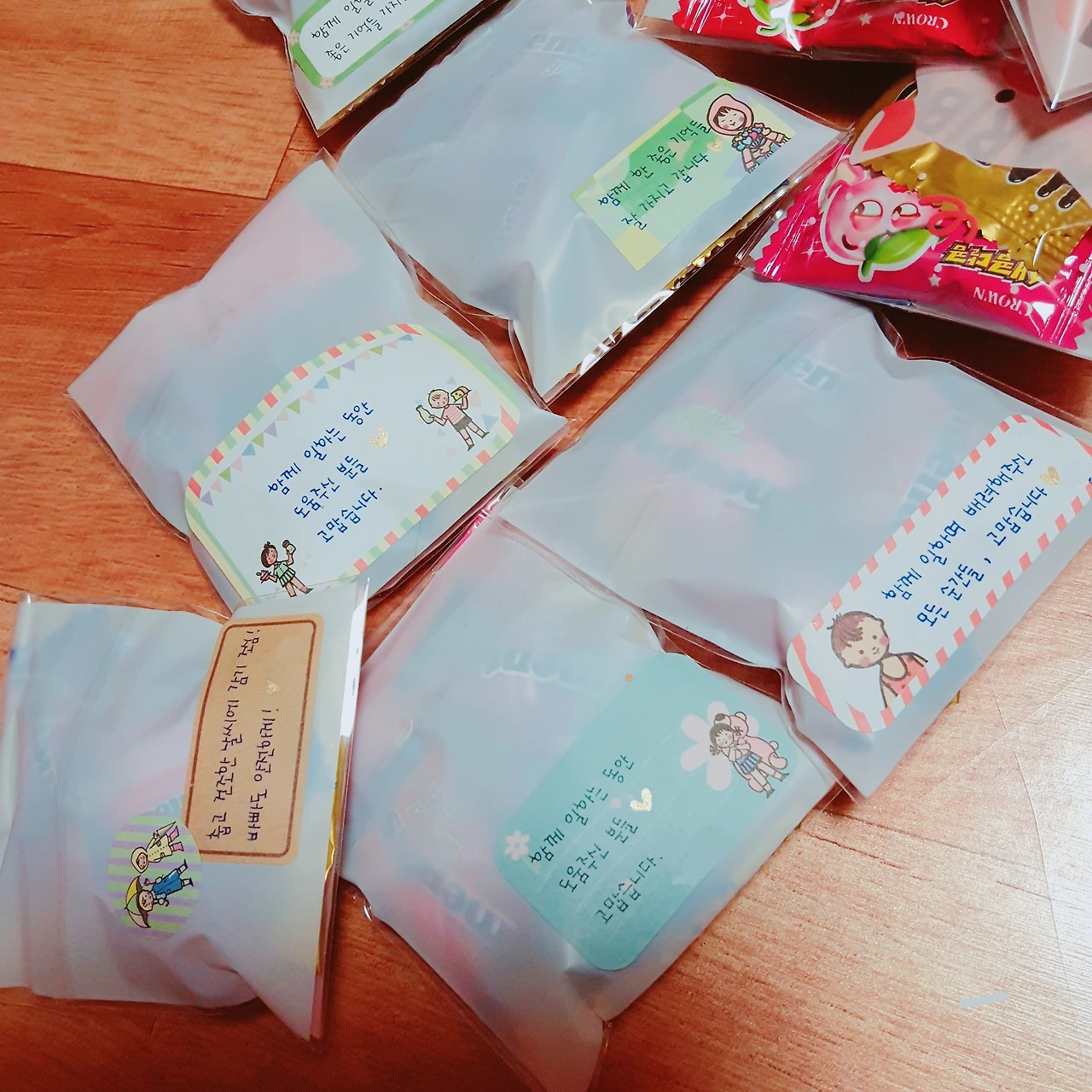 3과 4. 챙겨야 할 동료의 숫자가 너무 많아 작은 간식거리와 짧은 메모로 마음을 전하고 왔다. 당시 함께 일했던 사람은 아르바이트생을 포함해서 50명이 조금 넘었을 텐데, 혹시라도 챙기지 못하는 사람이 없도록 넉넉하게 100개 정도를 준비해 갔었다.