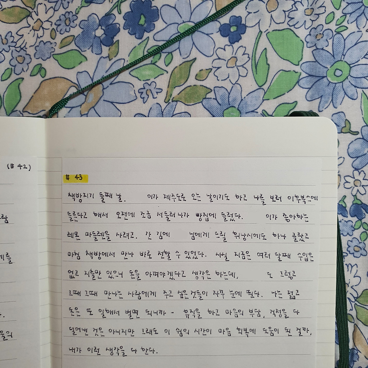 동생이 준비한 선물이라는 점을 빼고는 아쉽고 불편한 점이 많았다. 노트 앞에 귀여운 동백꽃이 달려 있어 왼쪽 페이지를 쓸 때마다 울퉁불퉁함이 다 느껴져 불편했다. 커버와 노트를 분리할 수는 있지만 빡빡하게 끼워진 편이라 매번 그러기엔 번거로움이 있어 그냥 불편을 감수하며 썼다.
