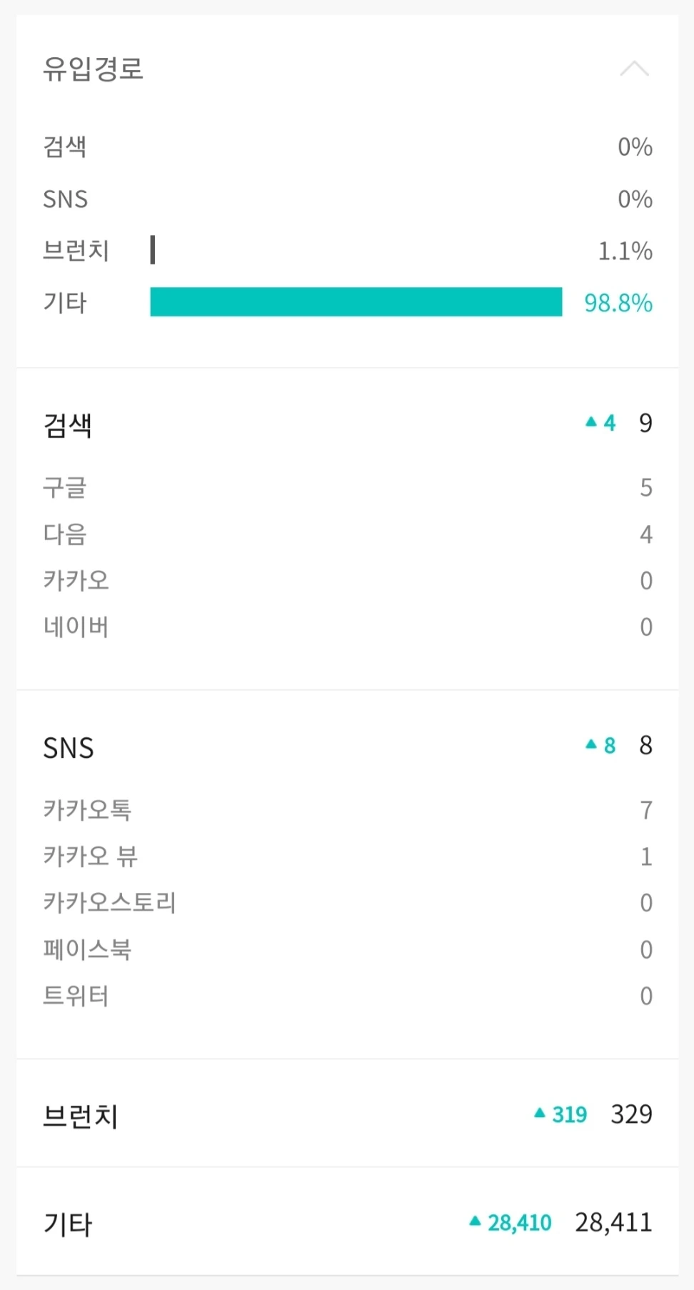 퇴근길, 몹시 궁금한 마음으로 브런치 통계를 확인하니 유입 경로 대부분이 '기타'였다. 기타가 무엇인지 몰라 찾아보니 나와 비슷한 일을 경험한 사람들이 있었고, 다음(daum) 어딘가에 노출이 되었을 거라고 찾아보라는 이야기를 읽었다.