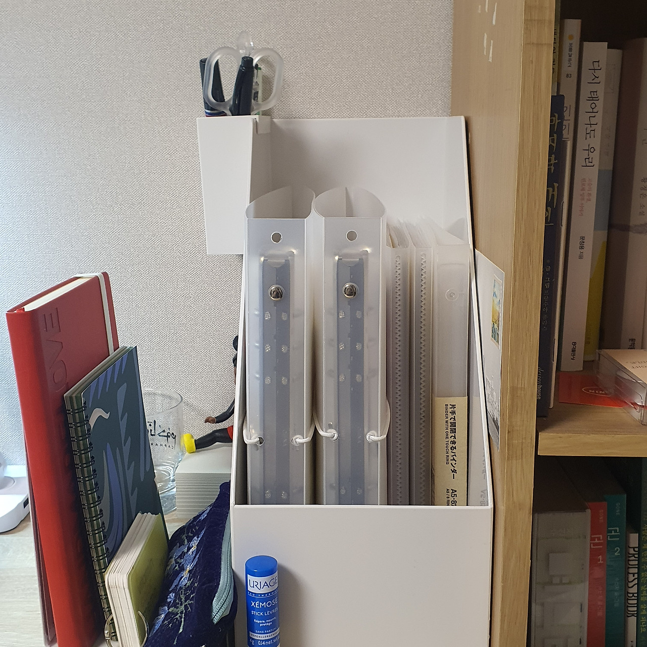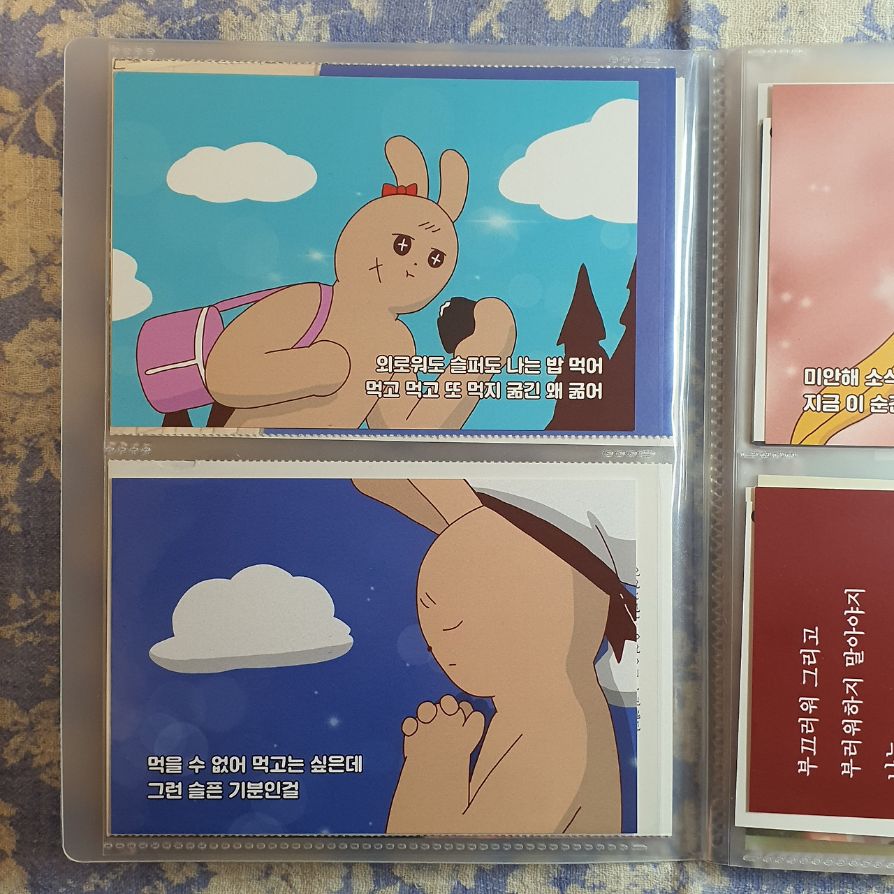 크고 통통한 두 친구는 스티커 파일이고, 옆에 있는 2개의 파일이 엽서를 보관 중인 파일이다. 스티커 파일과 비교하면 내용물이 적어 보이지만 100장이 넘는 엽서가 담겨 있다 :)