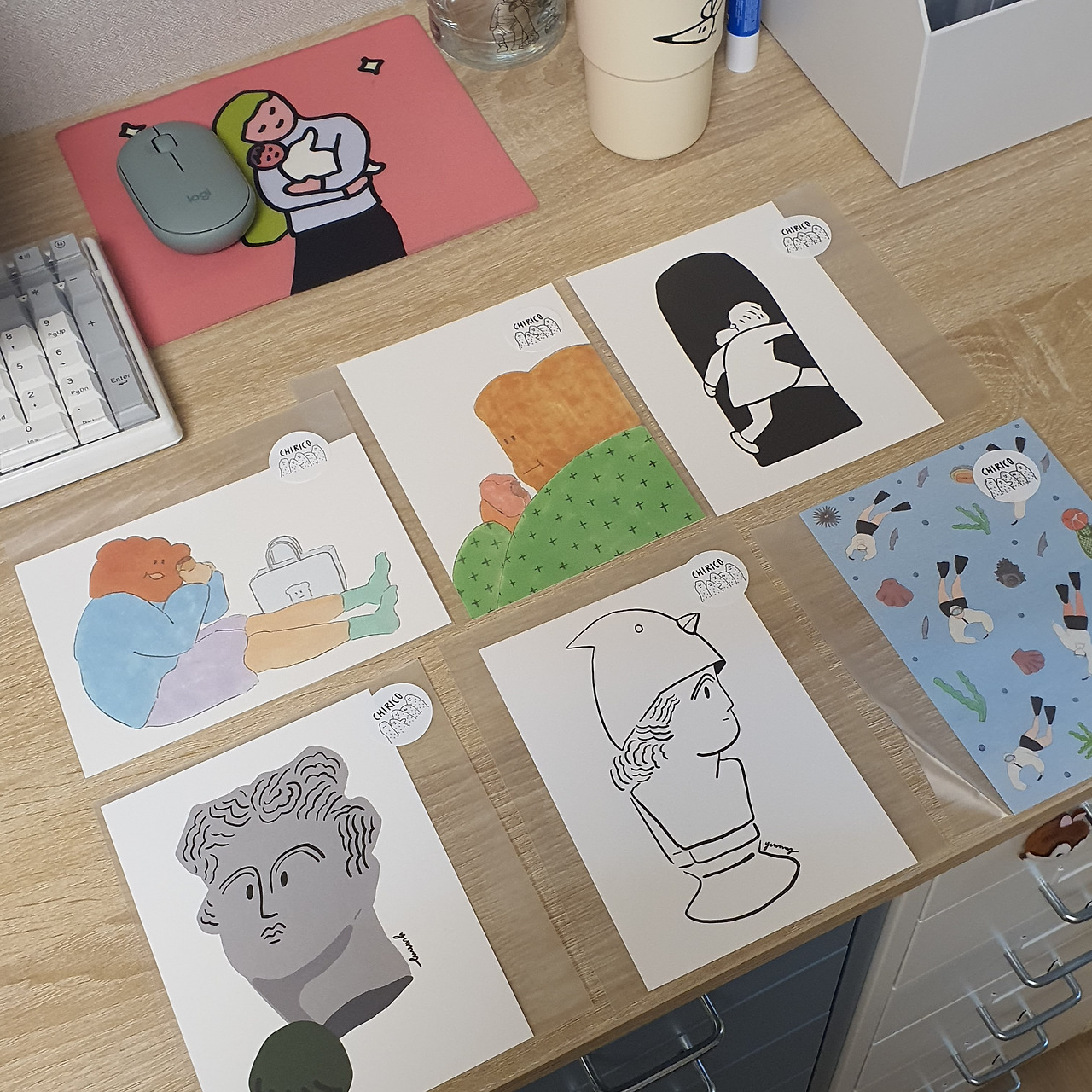 좋아하는 이성혁 작가님의 엽서는 페어에 갈 때마다 사기도 하고 작가님께 선물로 받기도 했다. 다른 엽서들은 팍팍 잘 쓰지만 이건 아끼고 아끼며 사용 중이다.