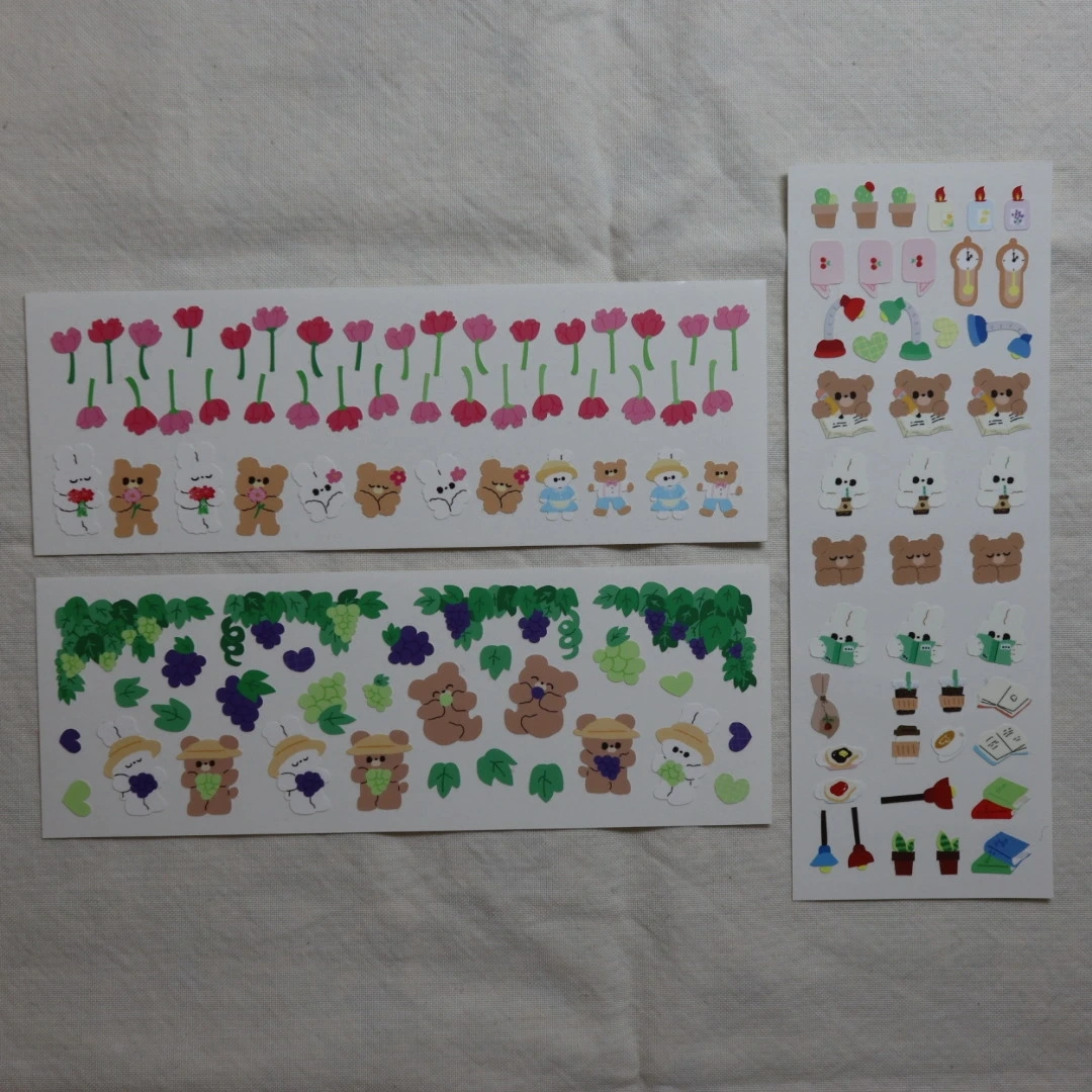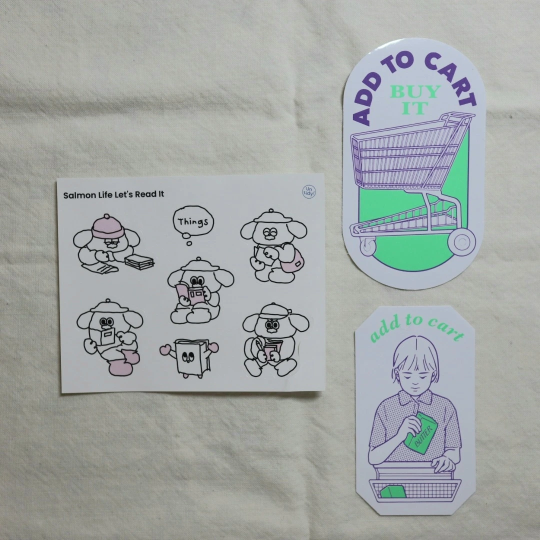 내가 이렇게 스티커를 사서 모으고 좋아할 때면 동생이 이야기한다. "언니는 좋겠다. 3만 원에 그렇게 행복할 수 있어서" 무슨 말인가 하면, 동생은 옷을 좋아하는데 옷은 여름 티셔츠가 아닌 이상 3만 원으로 예쁘고 좋은 아이템을 사기는 쉽지 않다(적고 보니 요즘은 물가가 올라 이 돈으로 여름 반발 티 사기도 쉽지 않을 수 있겠다). 그런데 나는 3만 원이면 이런 스티커 10장 정도를 살 수 있고, 이렇게 스티커 쇼핑을 하고 나면 책상에 올려두고 일주일은 즐거워하는 편이다. 그러니까 스티커를 사서 모으고 사용하는 건 꽤 괜찮은 취미라는 이야기고, 취미 생활로 추천하는 바이다.