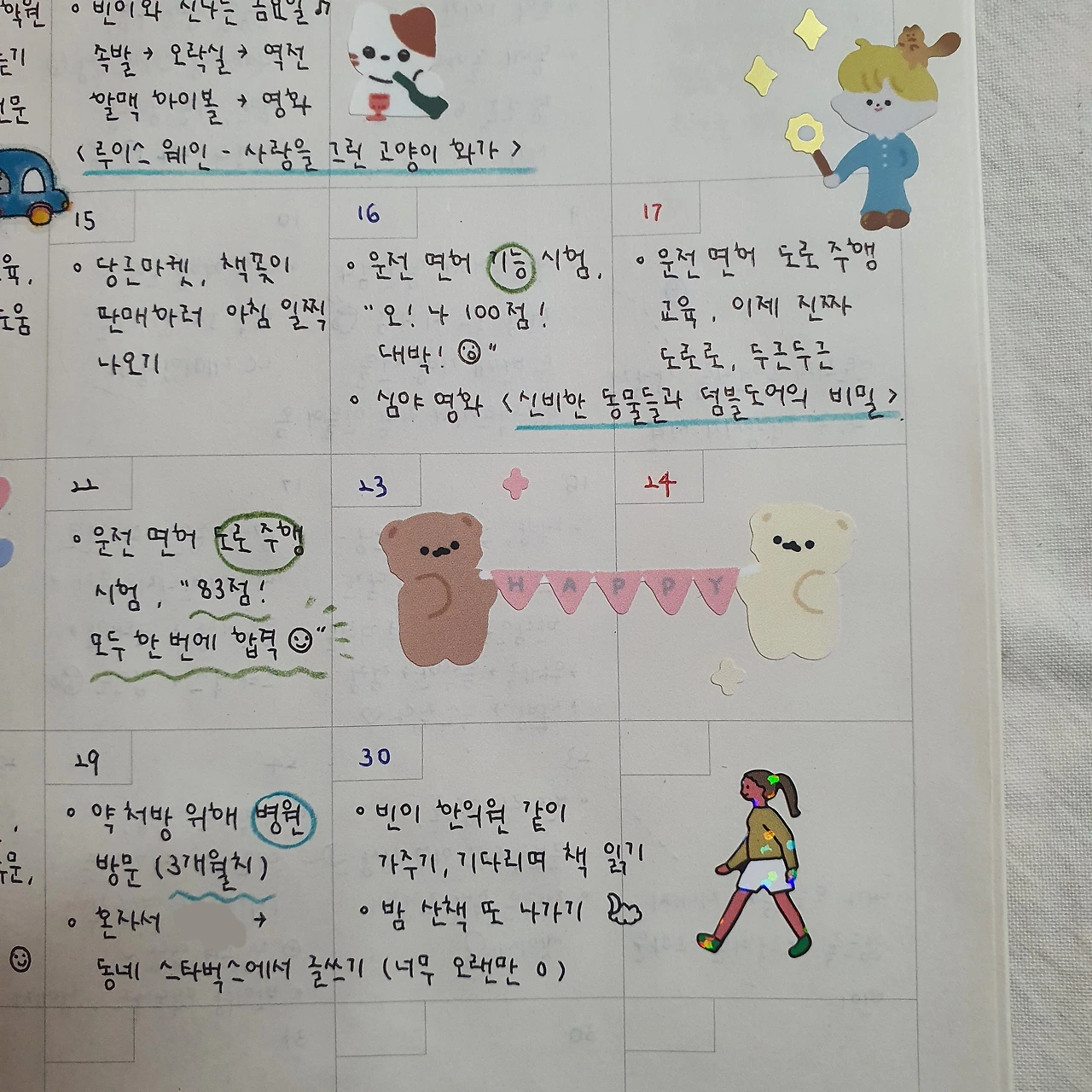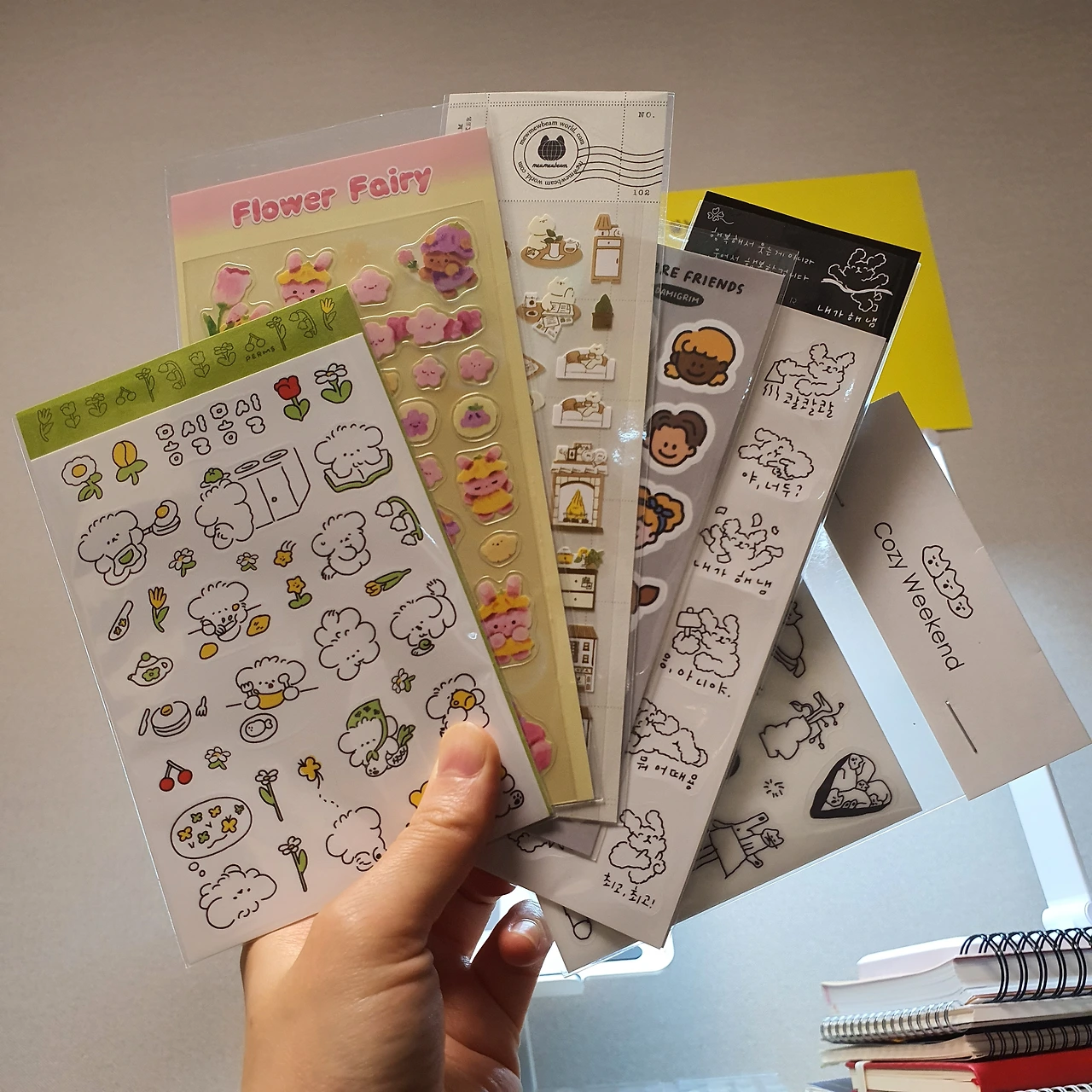 스티커를 사면 이렇게 사진을 찍어둔다. 나중에 사진을 모아 보면 그날의 재미와 즐거움이 떠올라 금방 기분이 좋아진다. 스티커를 사고 모으고 활용하는 것은 너무 재미있는 취미다 :)