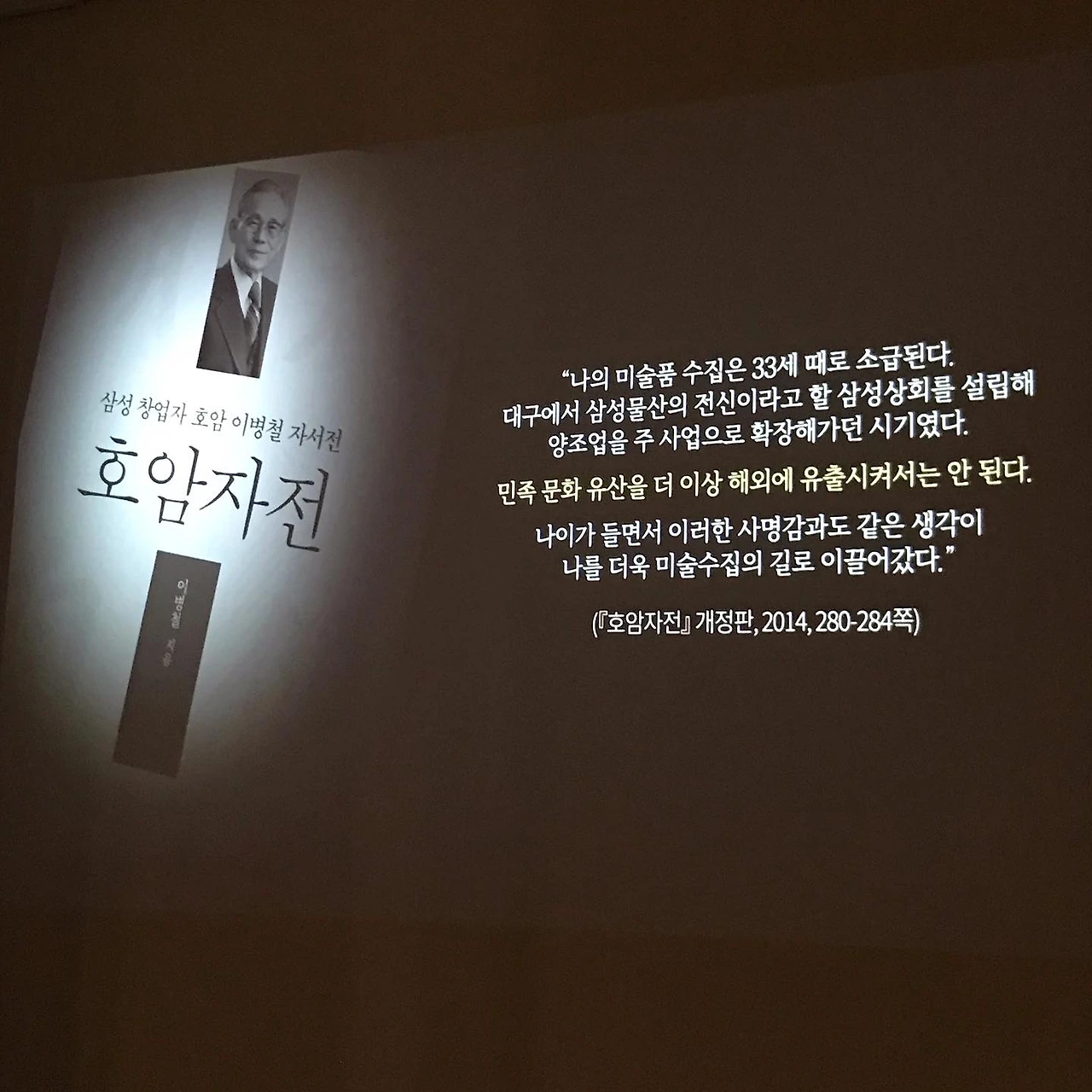 개인적으로 이건희 컬렉션이 무엇인지 작품을 본 것도 좋았지만, 호암선생을 시작으로 삼성가가 가진 철학과 시대적 사명이 무엇이었는지, 어떻게 실현하고 발전시켰는지, 그 정신이 현재까지 이어지고 있음을 알게 되고 배우게 된 점이 나에게는 가장 유익했다.