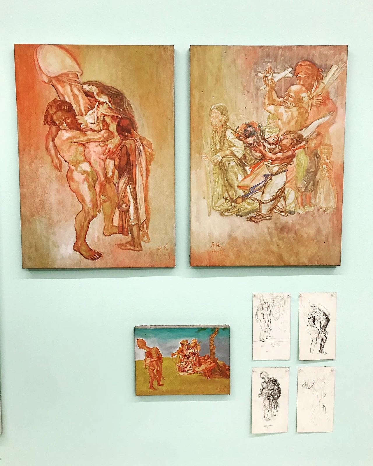 하지만 현대갤러리의 안목을 믿고 (별 기대없이) 전시를 봤다. 종교화라 더더욱 흥미 없이 빠르게 전시를 둘러보다가 작가의 디테일에 굉장히 놀랐다. 동서양을 아우르는 종교적 스토리, 종교화라고 보기 어려운 서정적인 색감, 무엇보다 작가의 인간 내면에 대한 깊은 고찰과 작가로서의 완벽한 테크닉을 구현하기 위한 노력이 감동적이었다.