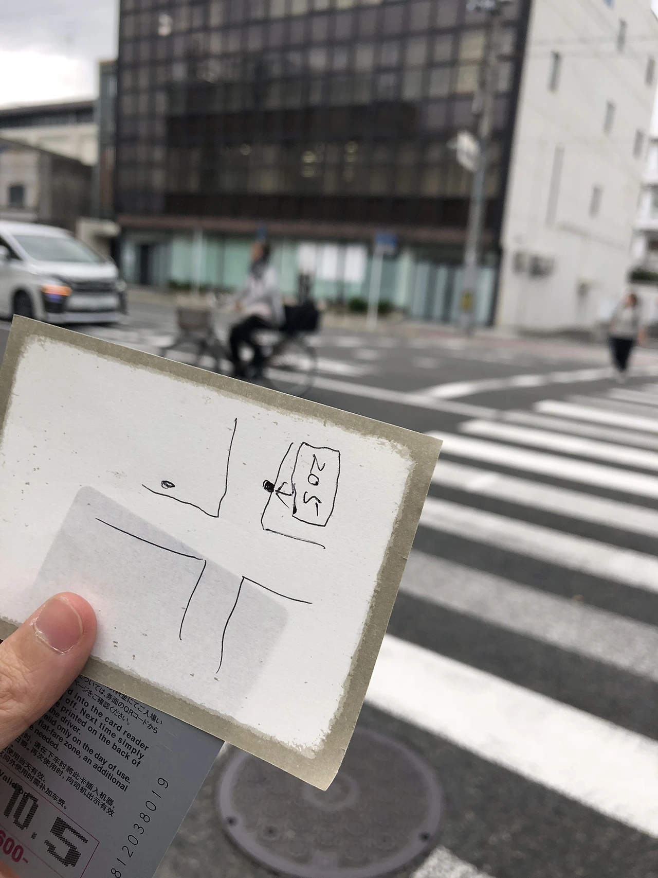 교토역으로 돌아오는 길에 버스를 잘못 타서 기사 아저씨가 직접 그려준 정류장 약도. 덕분에 이번 일본 여행은 좀 더 따스워졌어요.