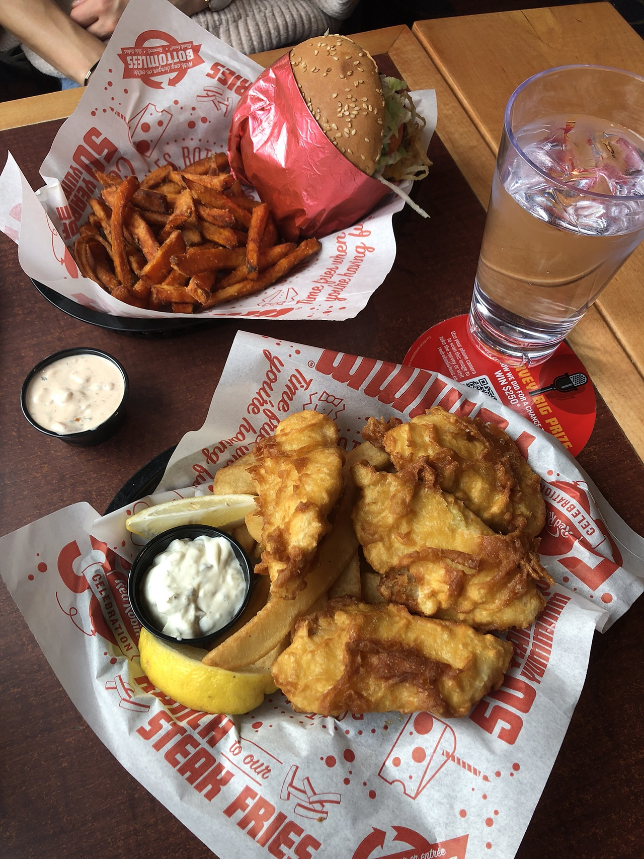 저녁은 수제버거와 대구튀김. 밀가루가 최고다!