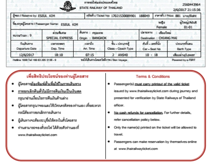 아 물론, 치앙마이행 야간기차를 선택할 땐 주의할 점이 있다. 출발 시간대가 여러 가지 있는데 기차의 피지컬(?)이라고 해야 하나 노후된 정도가 다르다. 난 일본에서 데려온 신식 기차에 타고 싶었기 때문에 6시 10분 열차로 예매했고 매우 만족했다. (2017년 기준)