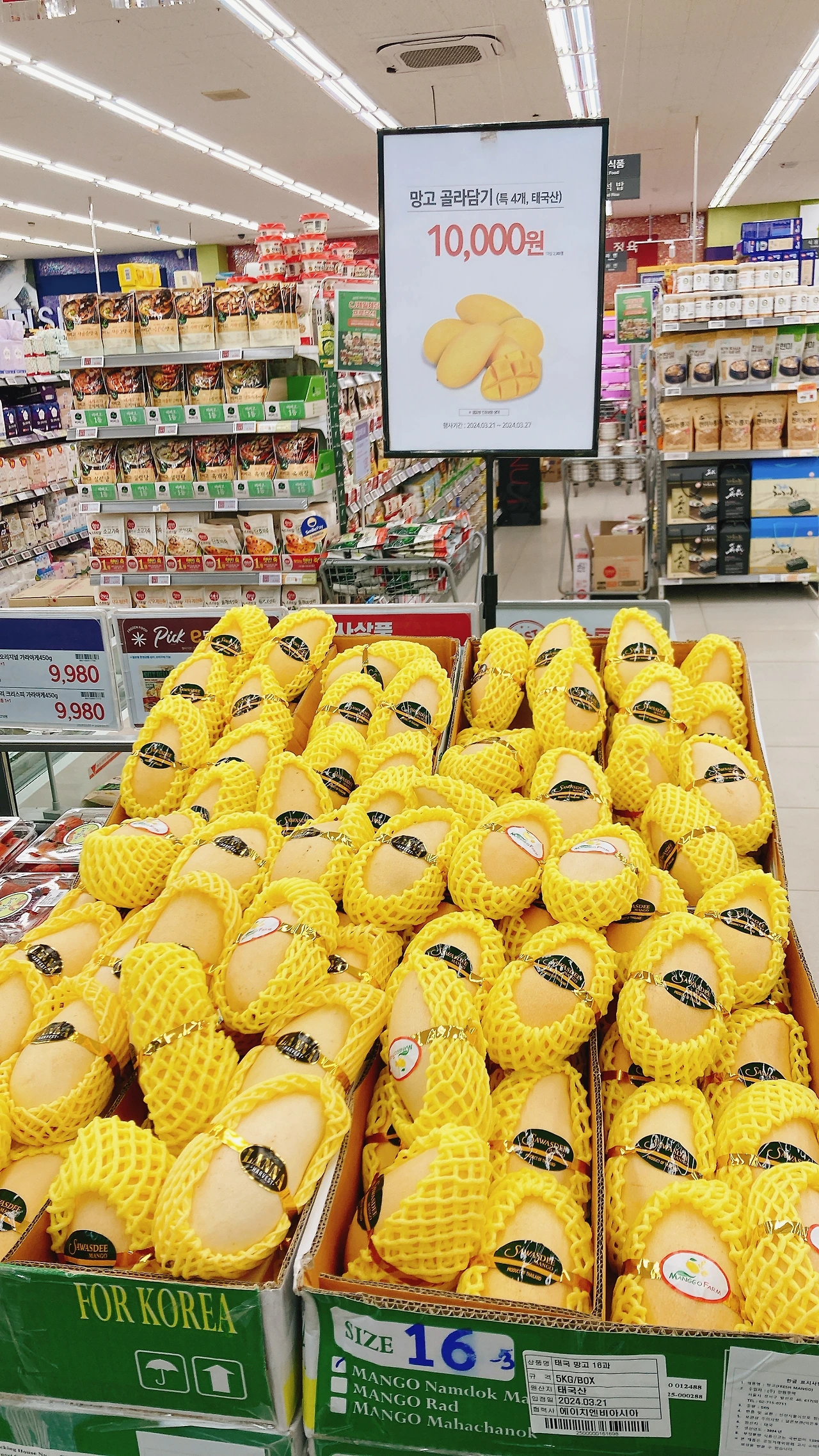 비자 때문에 한국에 잠시 들어오게 되었습니다. 인도네시아에서 온 딸이 있으니 엄마는 저를 데리고 여기저기 다니십니다. 오늘만 해도 마트를 두 군데 들렸는데... 가는 곳바다 오렌지박스와 망고박스가 쌓여있습니다. 과일값이 너무 비싸니 수입과일들을 대거 풀었다고 하더라고요. 오늘이 그 첫날인가 봅니다.