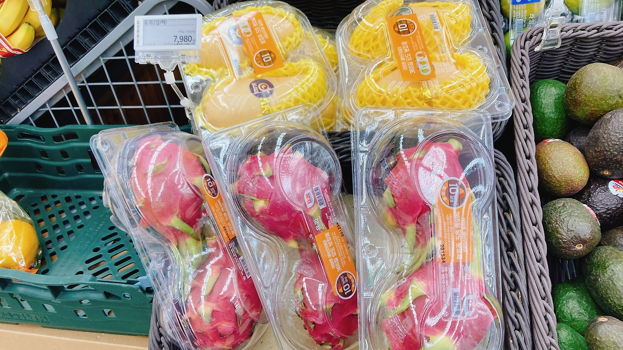 그런데 오늘은 딸기, 배, 사과가 아닌 오렌지와 망고가 그 자리를 차지하고 있었습니다. 오렌지와 망고에 로망을 가지고 계신 어머니는 오렌지 7개의 만원, 망고 4개에 만원이면 저렴한 편이라고 너무 좋아하십니다. 제가 보기에도 꽤 좋은 퀄리티의 과일들이 수입된 거 같았습니다. 망고 하나에 2500원... 인도네시아에 가면 1kg에 2500원 정도 하는데...라는 생각을 하면서 다른 과일들이 있는 곳으로 가서 보고는 깜짝 놀라고 말았습니다.