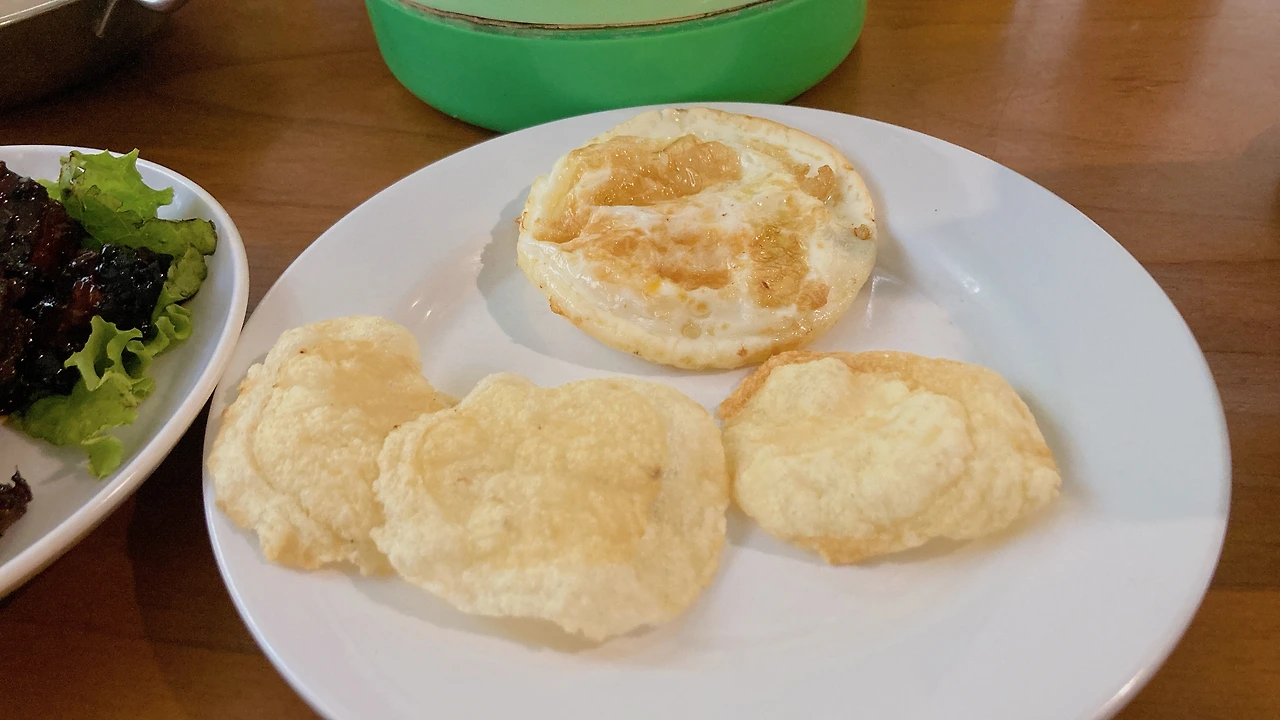 이 이야기를 하러 이렇게나 많은 서론을 적었나 봅니다.^^ 오늘 갔던 식당은 족자카르타에서 가장 유명한 꼬리곰탕집이었습니다. 이 더운 날에도 왠지 뜨끈한 국물 한 그릇 먹고 싶은 날이 있는데요. 바로 오늘이었나 봅니다. 3000원~4000원 정도에 꼬리곰탕을 한 그릇 할 수 있었어요. 소토는 천 원 정도 하는데 꼬리곰탕은 3-4천 원 정도 하는 거 보면... 조금은 비싼 펀입니다^^ 야채가 들어있는 국에는 제 손바닥만 한 커다란 꼬리 한 조각이 들어있었고, 매콤한 삼발과, 넉넉한 밥이 제공되었습니다. 큼지막한 꼬리 한 조각을 먹은 후 삼발과 함께 밥한입 물어 뜨끈~한 국물을 마시면 이보다 행복할 순 없다고 생각했습니다. 인도네시아는 크루푹(칩스)도 밥과 함께 먹는데요. 특히 이 집에서는 쌉쌀한 맛이 매력적인 'Emping [음핑]'이라는 크루푹(칩스)을 선택할 수 있었습니다. 쌉쌀한 음핑크루 푹 과 짭조름한 국물, 매콤한 삼발과 새콤달콤 토마토. 오늘도 든든한 한 끼로 인도네시아에 한걸음 가까워졌습니다.