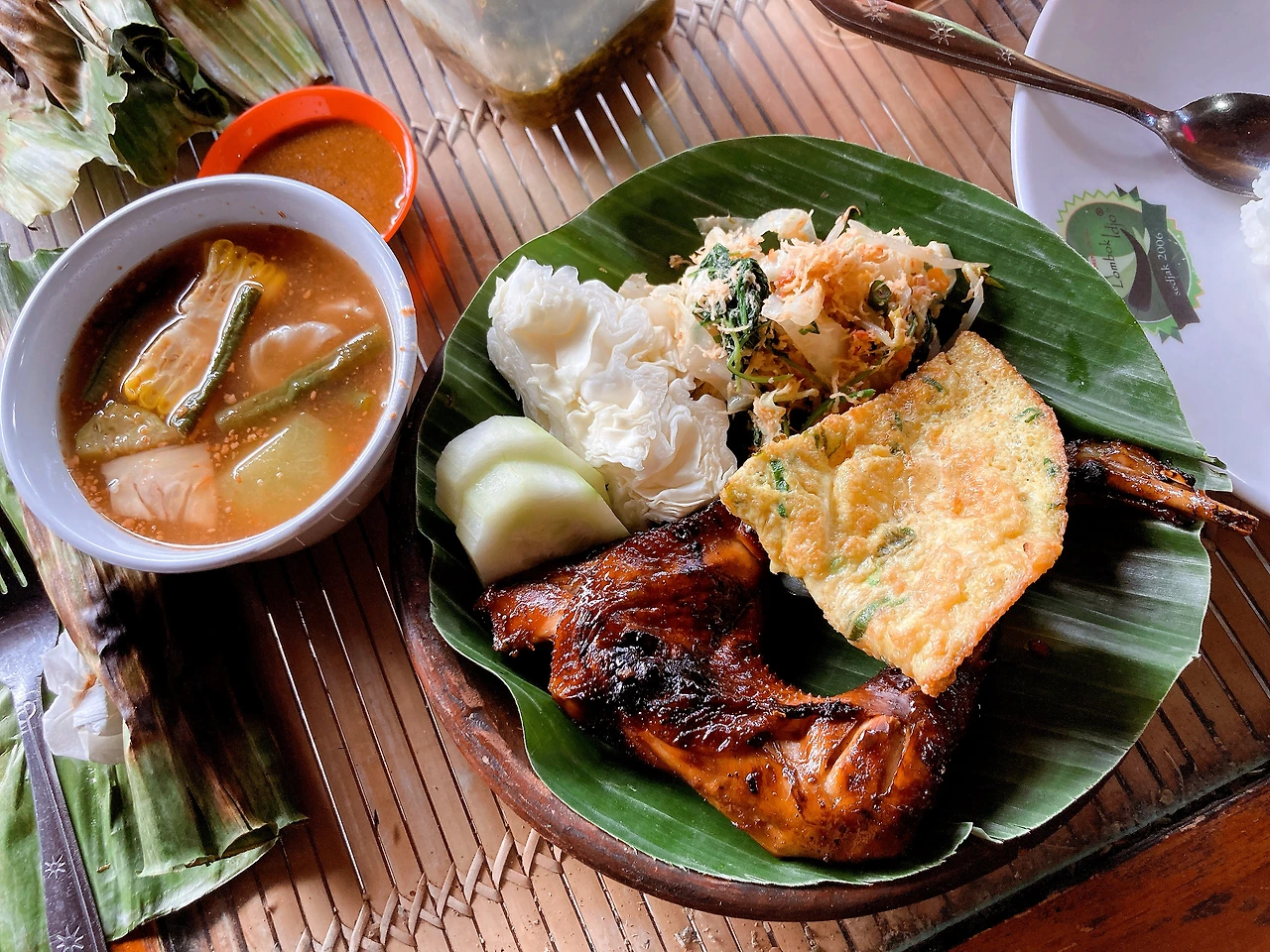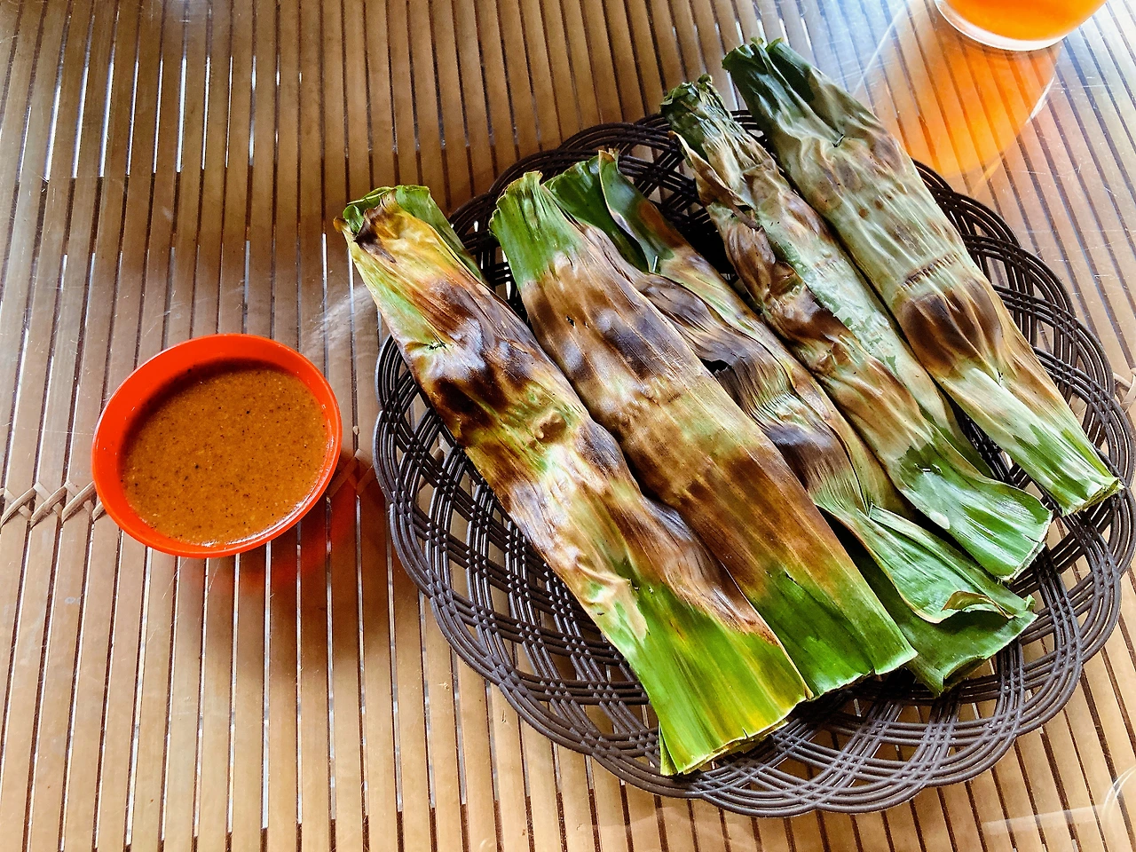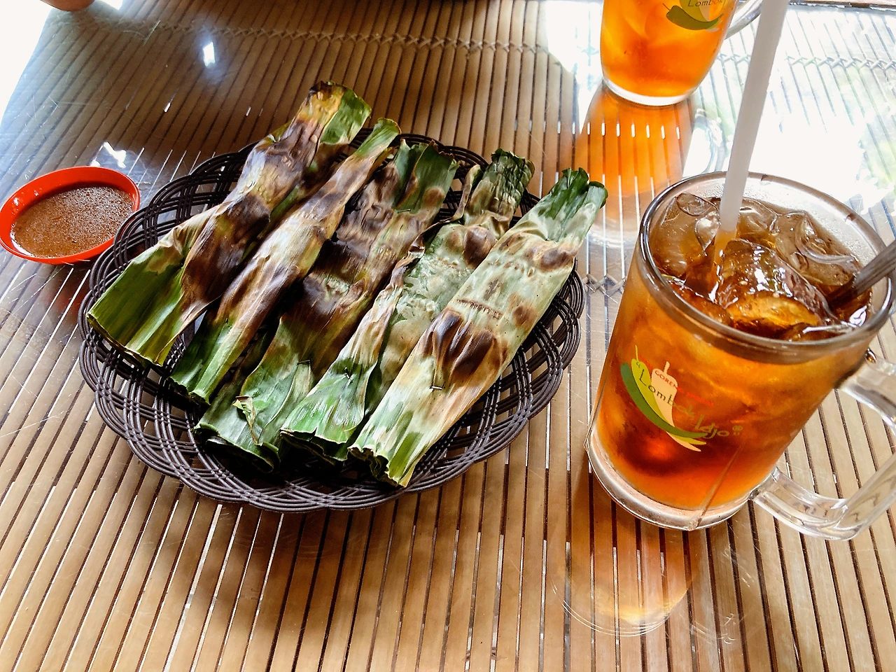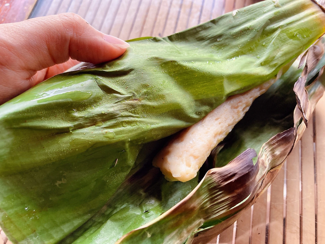 바나나잎이 바삭하게 구워졌고 그 안에서 익은 오딱 오떡은 부드럽게 쪄졌다.