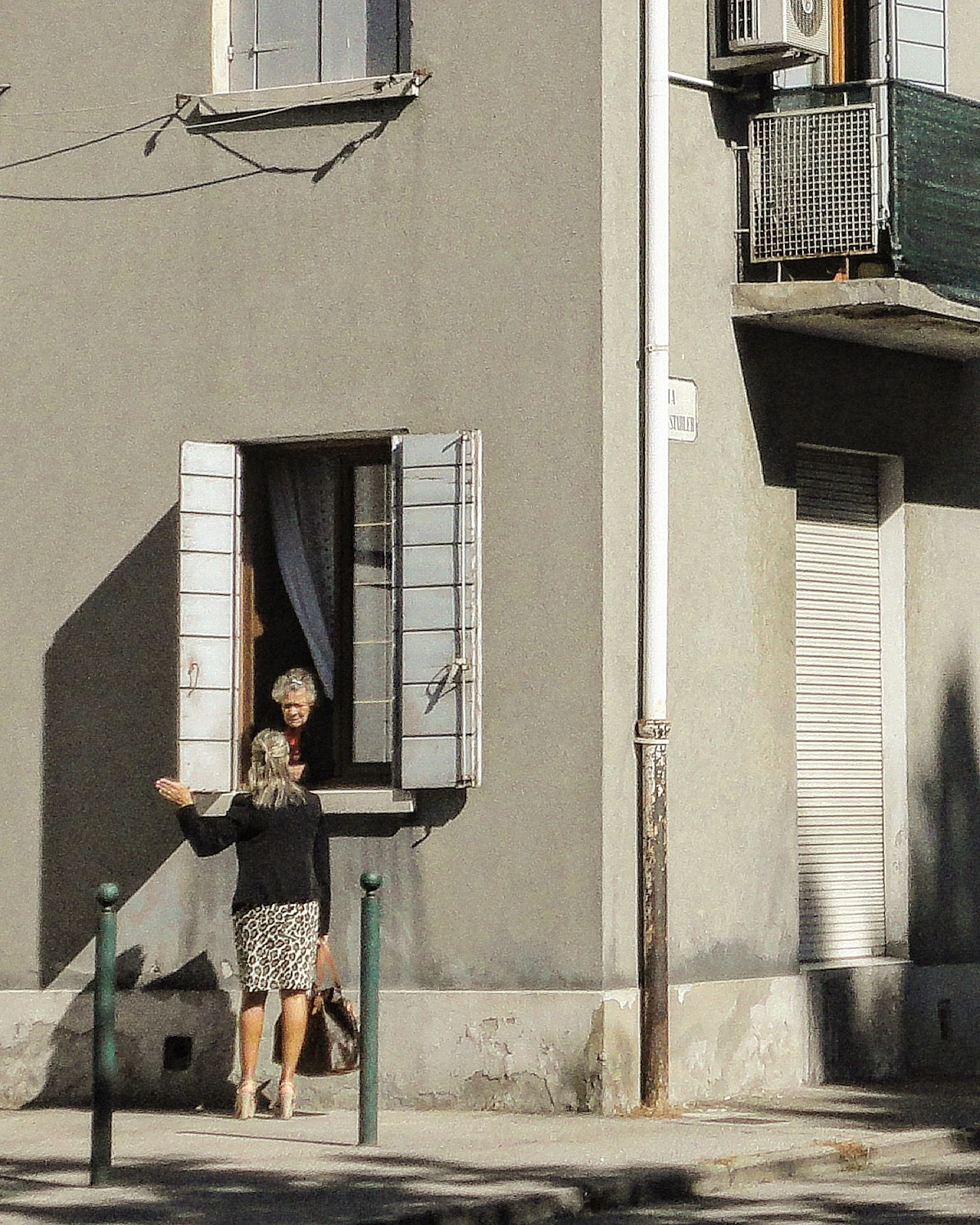 언니와 나는 동네 작은 젤라또 가게에 들어가 피스타치오와 티라미수 맛을 골랐다. 눈에 보이는 벤치에 앉아 본격적으로 젤라또 맛에 대해 이야기를 나누던 중 빨간색 스웨터를 입은 할머니와 눈이 마주쳤다. 집 창문에 서서 햇살을 쬐는 듯했다. 한 방향을 응시하던 그녀는 지나가는 마을 사람들과 인사를 나누며 아침을 보냈다.