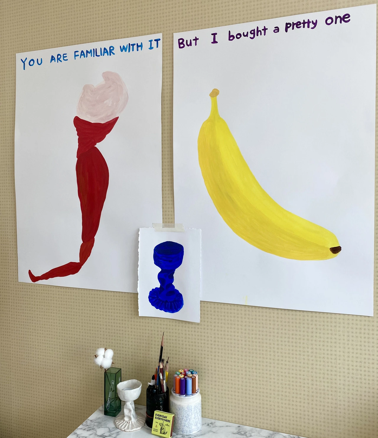 내 그림 중 계속 보고 있게 되는 세 점을 뽑아서 작업 책상 벽에 걸어 두었다. 왜 세 점이냐면, 사실 세 점밖에 없다.