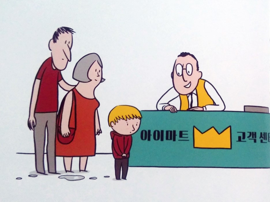 그림책 <완벽한 아이 팔아요>의 묘미는 완벽한 아이를 찾는 뒤프레 부부의 허술함 찾기에 있어요. 글로는 알 수 없는 그림 속의 숨은 이야기를 들여다보며 오늘도 다짐합니다. 아이는 나의 편리와 만족을 위해 존재하는 부속품이 아니라는 것, 아이는 나와 다른 또 하나의 인격이자 독립된 개체라는 것을요.