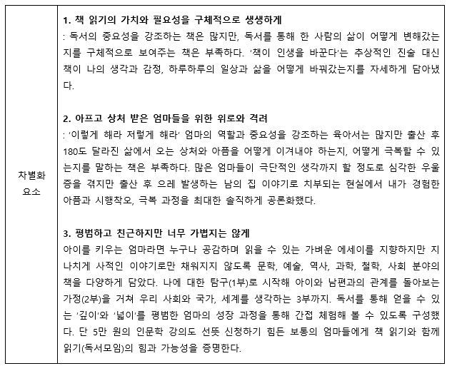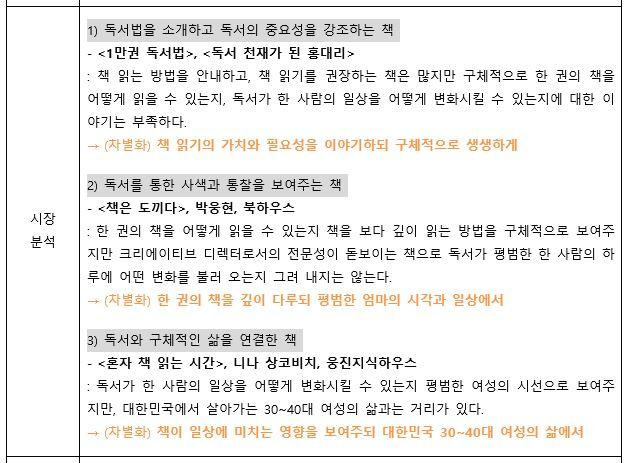 가장 중요하다고 생각했던 핵심 콘셉트- 경쟁 도서와의 차별화 부분만 가져왔어요.