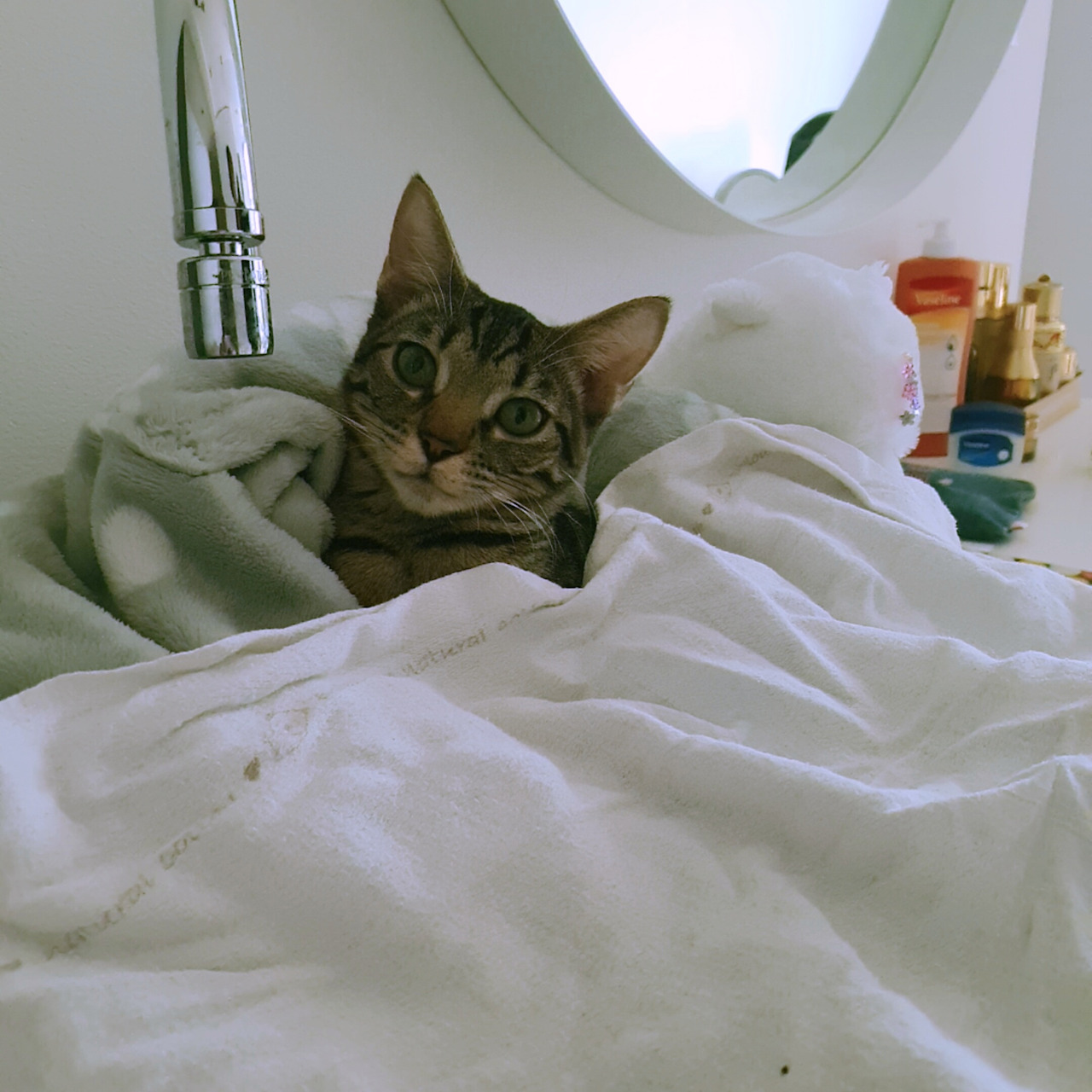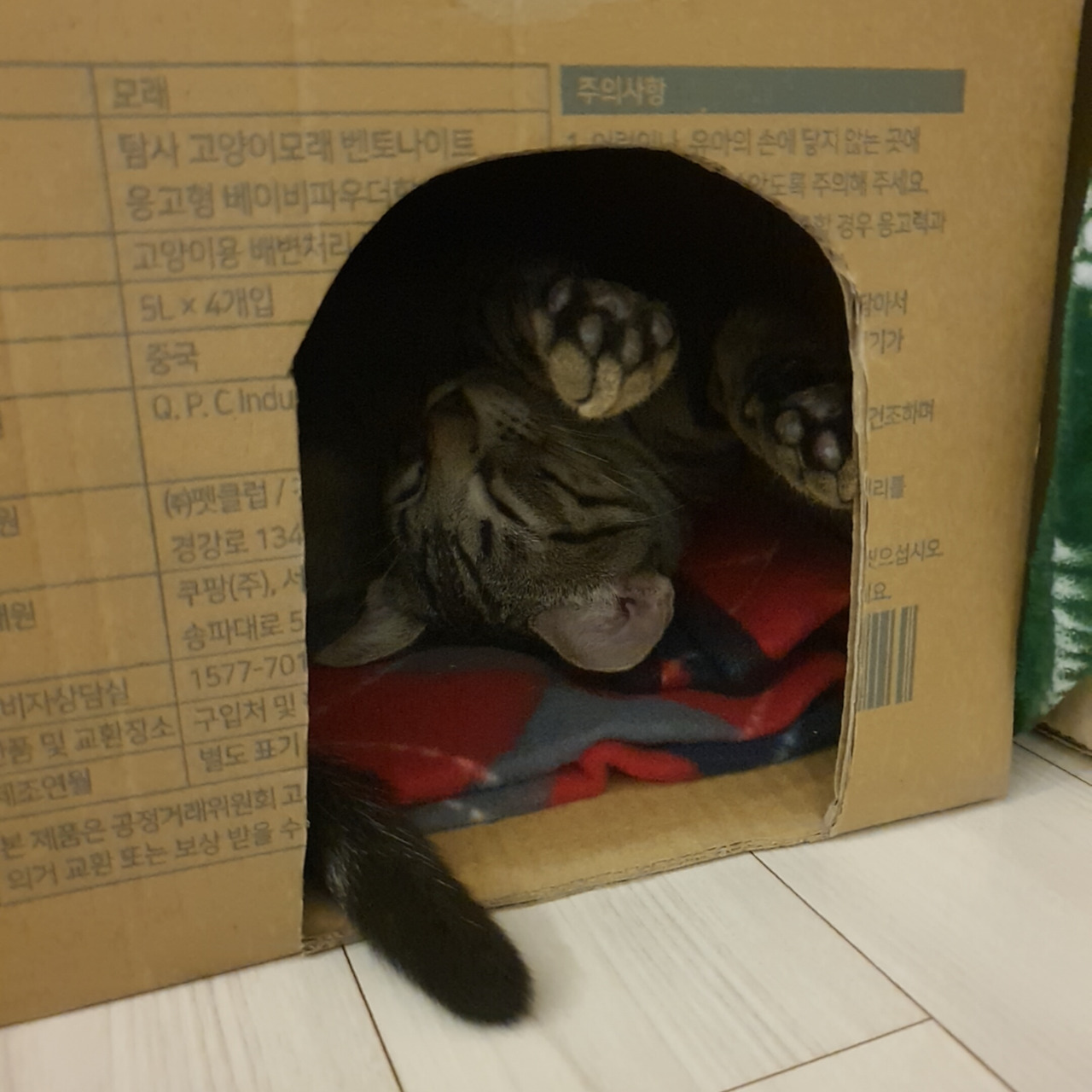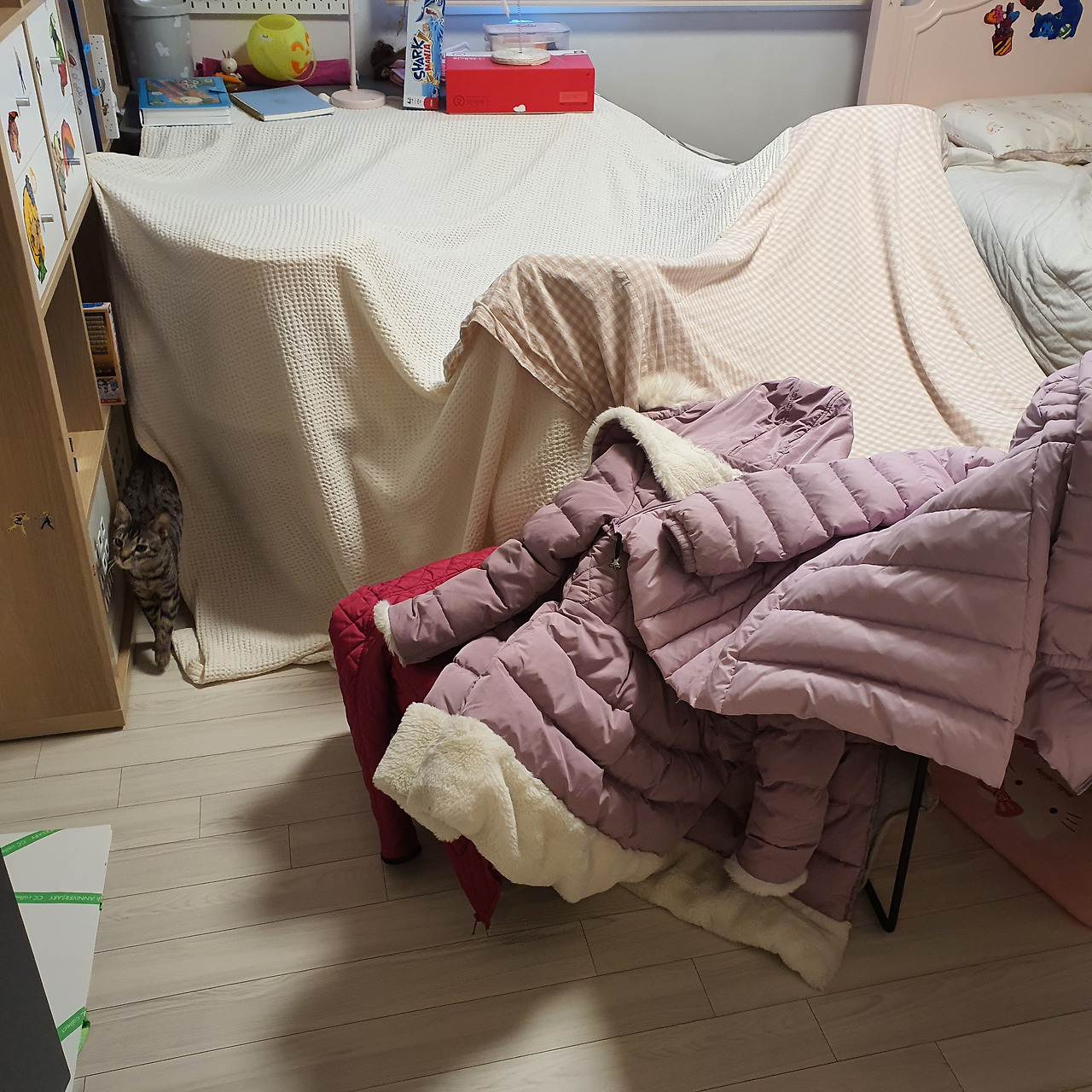 우리는 만들었다. 크림이가 우리 집에 온 첫 날밤, 아이는 고양이 모래가 들어있던 택배 상자에 구멍을 뚫고 무릎 담요를 깔아주었다. 크림이는 하루의 절반 이상을 그 안에서 보냈다. 크림이를 위한 물건은 계속해서 날아왔고, 그 물건이 담겨 있던 택배 상자는 새로운 집으로 지어졌다. 아이는 고양이 집 전문 건축가, 크림이 전용 주택 시공자가 되었다. 아이의 설계는 고정관념을 뛰어넘었다. 화장대 옆 오픈 세면대가 크림이 침실로 재탄생했다.