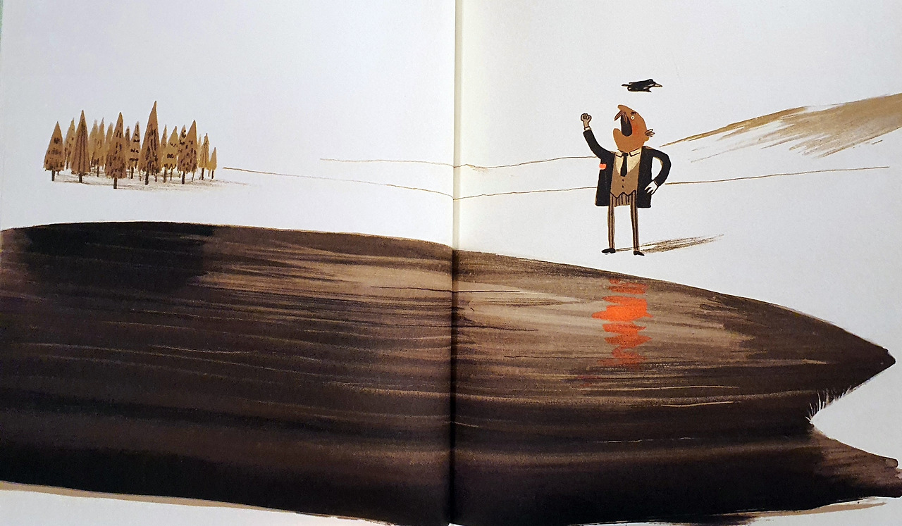 이 뻔뻔한 아저씨는 발을 쾅쾅 구르며 주먹을 불끈 쥐고 시뻘게진 고개가 뒤로 넘어가도록 고래고래 소리를 지른다. 그림책을 보던 9살 아이 입에서 "이 아저씨 왜 이래?" 소리가 절로 나오는 생떼가 펼쳐진다. 결국 산은 소유권을 양도한다. "그래, 네가 내 주인이야. 난 네 거야."