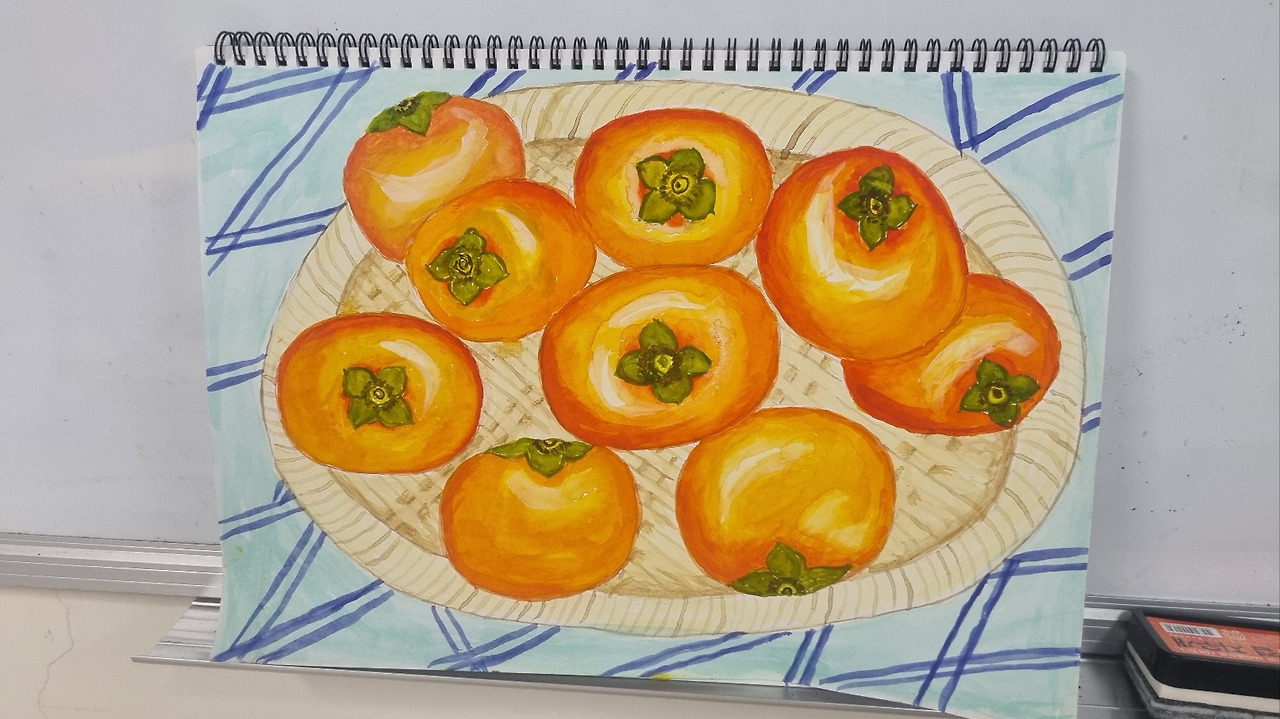 감 그리기에 열중이시다. 감완료 후 크리스마스 풍경화 그리기.
