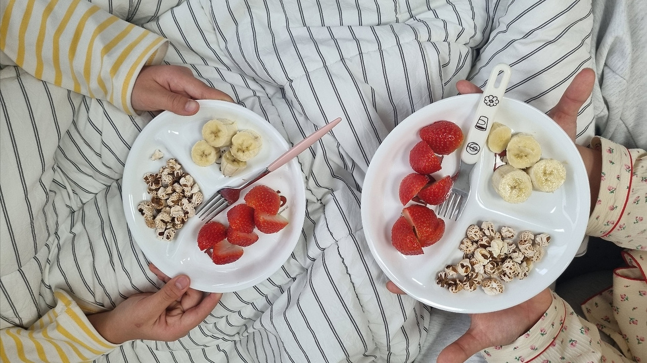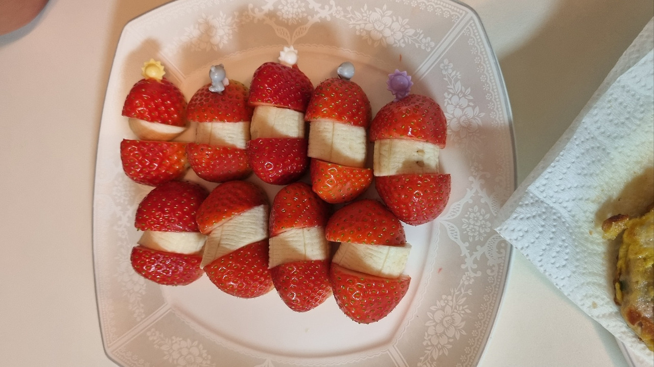 저녁시간 남은 딸기와 바나나 준비를 둘째에게 맡겼다.