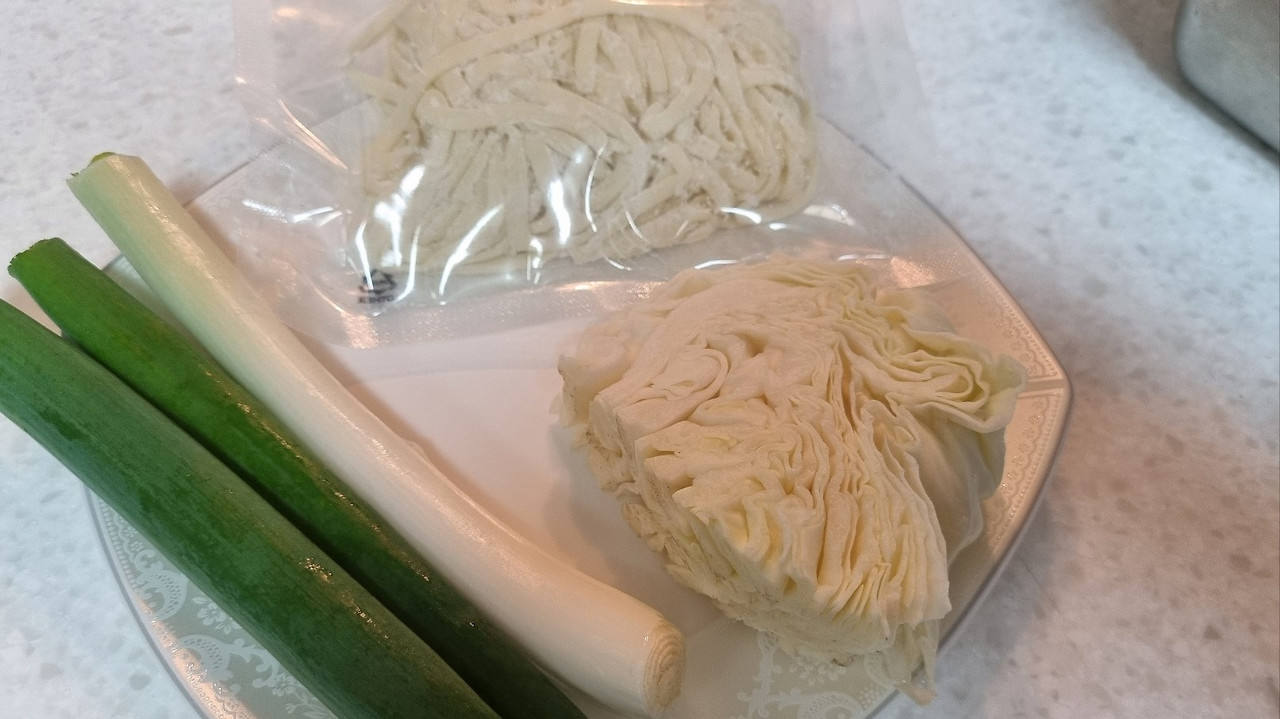 양배추는 사진의 양보다 2배 정도 넣었고 닭다리살은 쿠팡에서 파는 한팩을 넣었다. 다리살이 4개 들어갔다. 파를 길게 썰어야 둘째가 잘 먹을 것 같아 길게 썰어 넣었다.