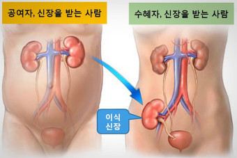신장이식은 생체와 사체로 나뉘는데, 보통 형제, 자매, 부모님과 유전자 검사를 통해 가장 일치하는 분의 신장을 기증받거나, 신장이식대기자로 대기하여 유전자가 맞는 뇌사기증자분이 생겼을 때 신장이식을 받는 것이다. 여기서 알아야 할 점은 혈액형 별로 약간의 차이는 있지만, 뇌사자대기는 보통 10여 년이 걸리기에 즉 위에 언급한 1,2의 수술을 시행하여 투석을 10년간은 해야 한다는 것이다.