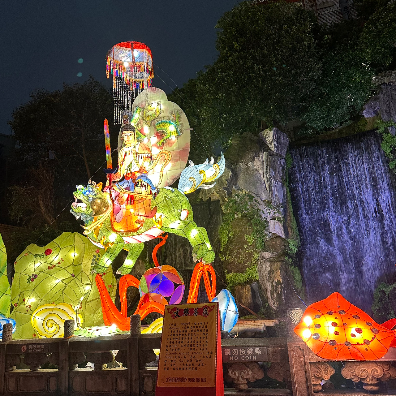 도착하니, 인공 폭포가 흐르고, 오색빛깔 용모양등의 화려한 풍선들, 그리고 빨간 절의 내부가 시선을 사로잡았고, 몇몇 사람들은 각자의 염원을 담아 절을 하며 , 몇몇 사람들은 '포잣'이라 불리는 반달모양의 돌? 을 두 개씩 던져 점을 치고 있었다.(두 개의 반달 모양 나무 조각을 바닥에 던지면 신이 응답해준다고 한다)