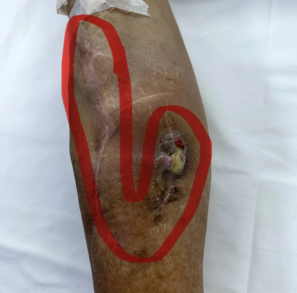 고름이 나오며, 계속 혈관 끝 부분이 튀어나오고 피부를 봉합하면 또 튀어나오고...