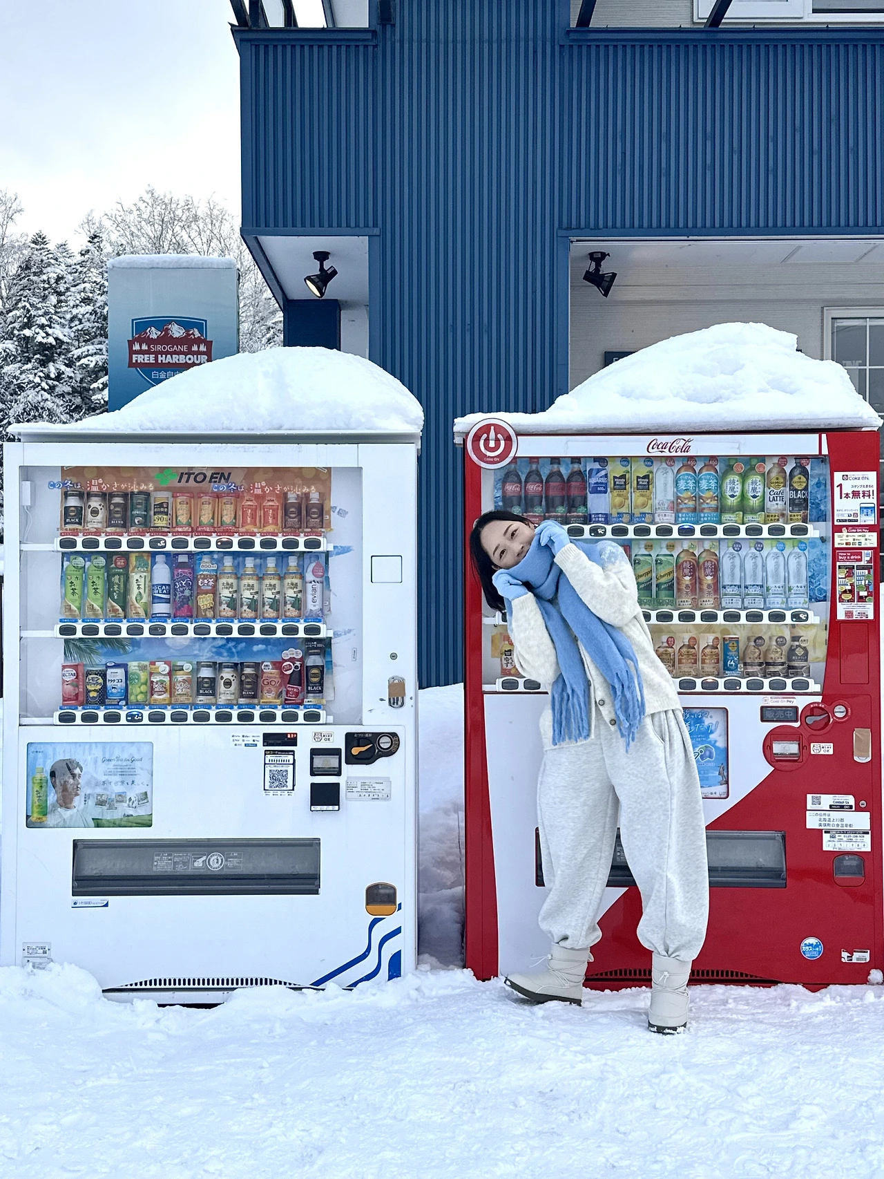 퐁실퐁실한 눈이 하얀, 파랑 자판기 위에 마치 모카커피 위 생크림처럼 얹혀 있고, 여기저기 누군가 일부러 만들어둔 것 같은 작은 눈사람들.