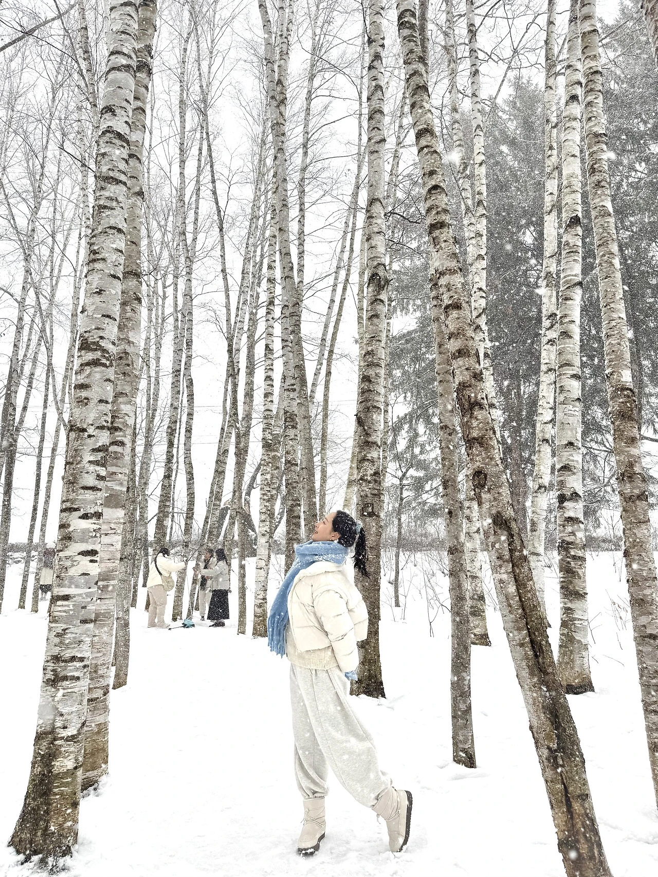 하늘 높이 뻗은 자작나무에 하얀 솜처럼 걸린 눈들이 오늘 여행의 마침표처럼 느껴졌다.