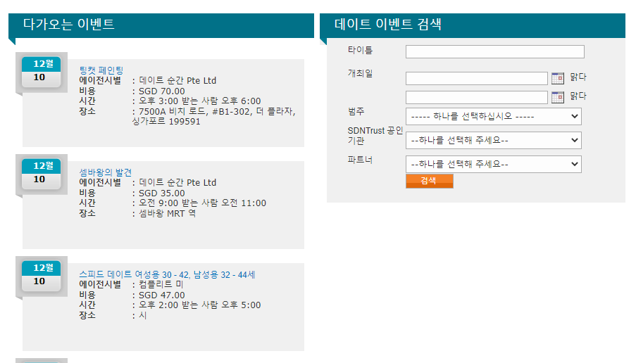 SDN은 여러 민간 데이트 업체 및 행사 관련 업체로부터 남녀 데이트 행사 등의 정보를 모두 모아서 SDN 공식 홈페이지에서 관리한다. 사람들은 SDN 홈페이지에서 데이트 이벤트들을 확인 후에 소정의 비용을 내고 참가할 수 있다. 약 4만원에서 7만원 정도로 다양한 가격이 있으며 행사 또한 그 수가 매우 많다.