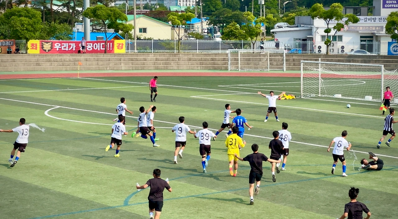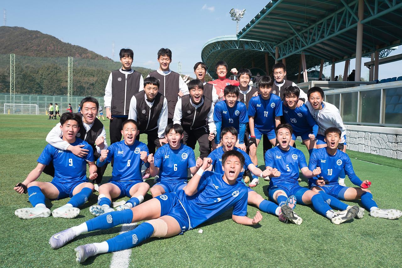 후반 초반 에이스 문현기의 발끝에서 역전골이 터져 나왔다. 2:1 역전! 이후 만회를 위한 상대방의 맹공이 이어지고 우리는 힘겹게 수비를 해야 했지만 후배들이 내뿜는 자신감만큼은 분명해 보였다. 경기 종료를 얼마 남겨놓지 않은 시간 2학년 마정윤 군이 멋진 중거리슛을 성공시키면서 승부의 쐐기를 박았다. 벌써 세 번을 우승해 금강대기에 특히 강하다는 팀을 상대로 3:1로 완승! 팀 사상 처음으로 2년 연속 전국대회 결승 진출이다!