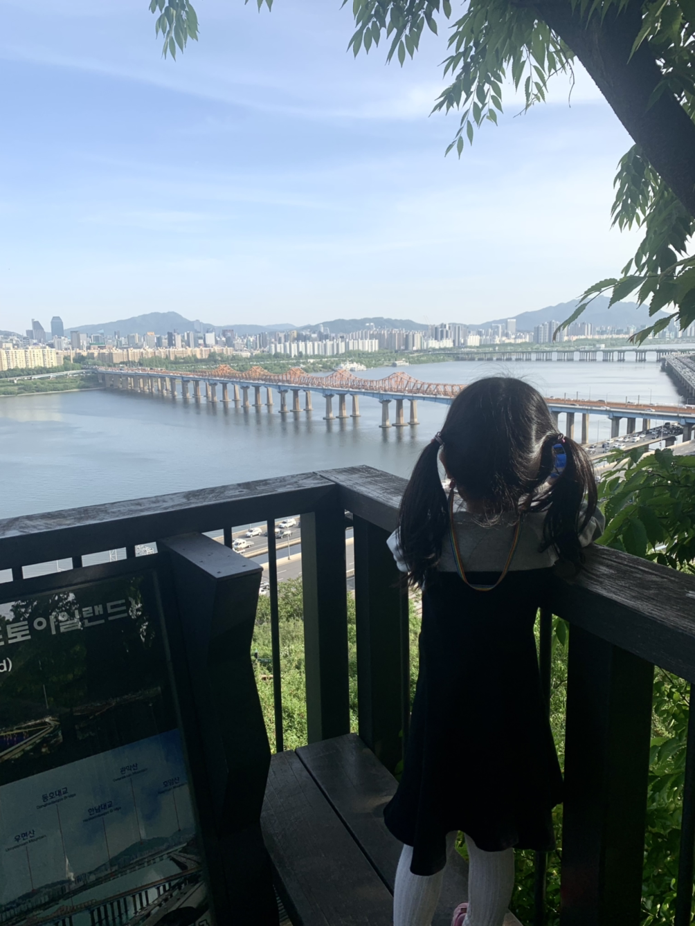 아파트들 사이에 하나의 성처럼 우뚝 서있는 소위 동네 뒷산인 달맞이 공원은 계단으로 10분 정도만 오르면 탁 트인 서울의 풍광을 볼 수 있다. 해발 고도가 80m 정도여서 부담 없이 오를 수 있으면서도 이런 아름다운 경치를 볼 수 있는 뒷산이 있다는 것도 엄청난 축복이다. 9년 전에 2년 동안 살면서 이곳에 한 번도 온 적이 없다는 사실이 스스로가 의아할 정도지만 이제라도 알게 되어 기쁘고, 내 아이와 함께 오니 더욱 좋았다.