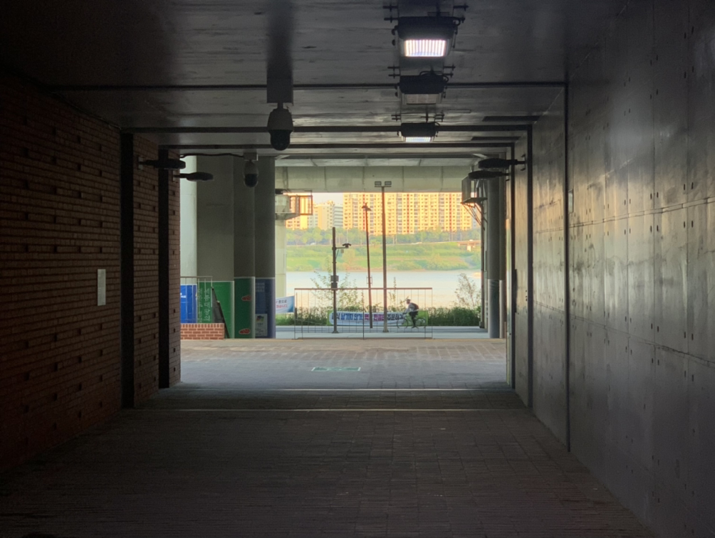 한강으로 이어주는 작은 토끼굴은 지나는 순간 마치 다른 시공간으로 이동해서 낯선 어딘가로 온 거 같은 느낌이 너무 좋다. 이곳에서의 물 냄새, 바람, 도로에서 건너는 차 소리, 불빛마저도 평소와 다르게 보이고 매료될 수밖에 없다. 산책로가 고가도로 아래에 있어서 얼핏 쾌적하지 않을 수는 있지만, 자연과 바쁜 서울의 절묘함을 보고 듣고 느낄 수 있다는 점에서 가족공원보다 더 매력적이다. 나의 방공호와 같은 한강 산책로에서 걸으면 이런저런 생각을 정리하며 나의 하루가 잘 마무리되는 느낌이다.