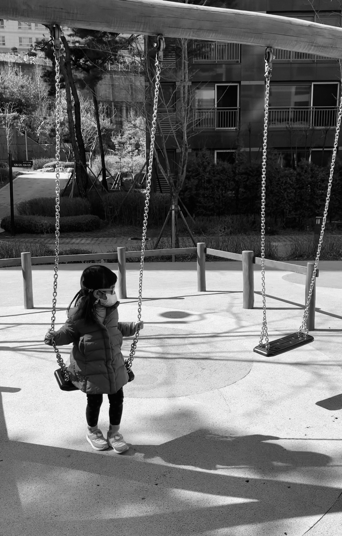 놀이터에 가면 두 개의 줄 끝에 작은 받침이 달린 그네가 있다. 앞뒤로 밀면서 서서히 높이 띄워야 하는 기구여서 앉아서 타고 있는 사람과 서서 밀어주는 사람의 진동 수가 맞아야 큰 움직임이 생겨서 높이 올라갈 수가 있다.