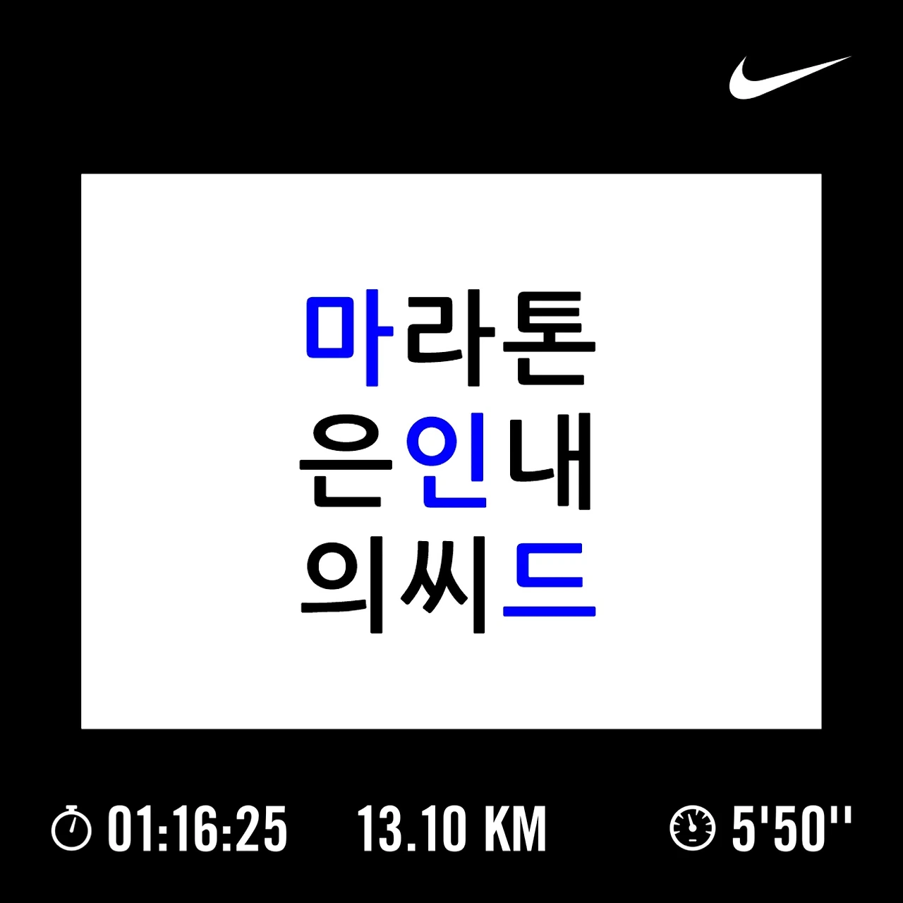 마라톤은 정말 인내의 스포츠인 것 같다. 빠르게 달리는 게 중요한 게 아니라 끝까지 달리는 게 중요하다. 중간에 포기하고 싶은 순간이 수도 없이 찾아오지만, 그때마다 '조금만 더, 조금만 더' 하며 버텨낸다.