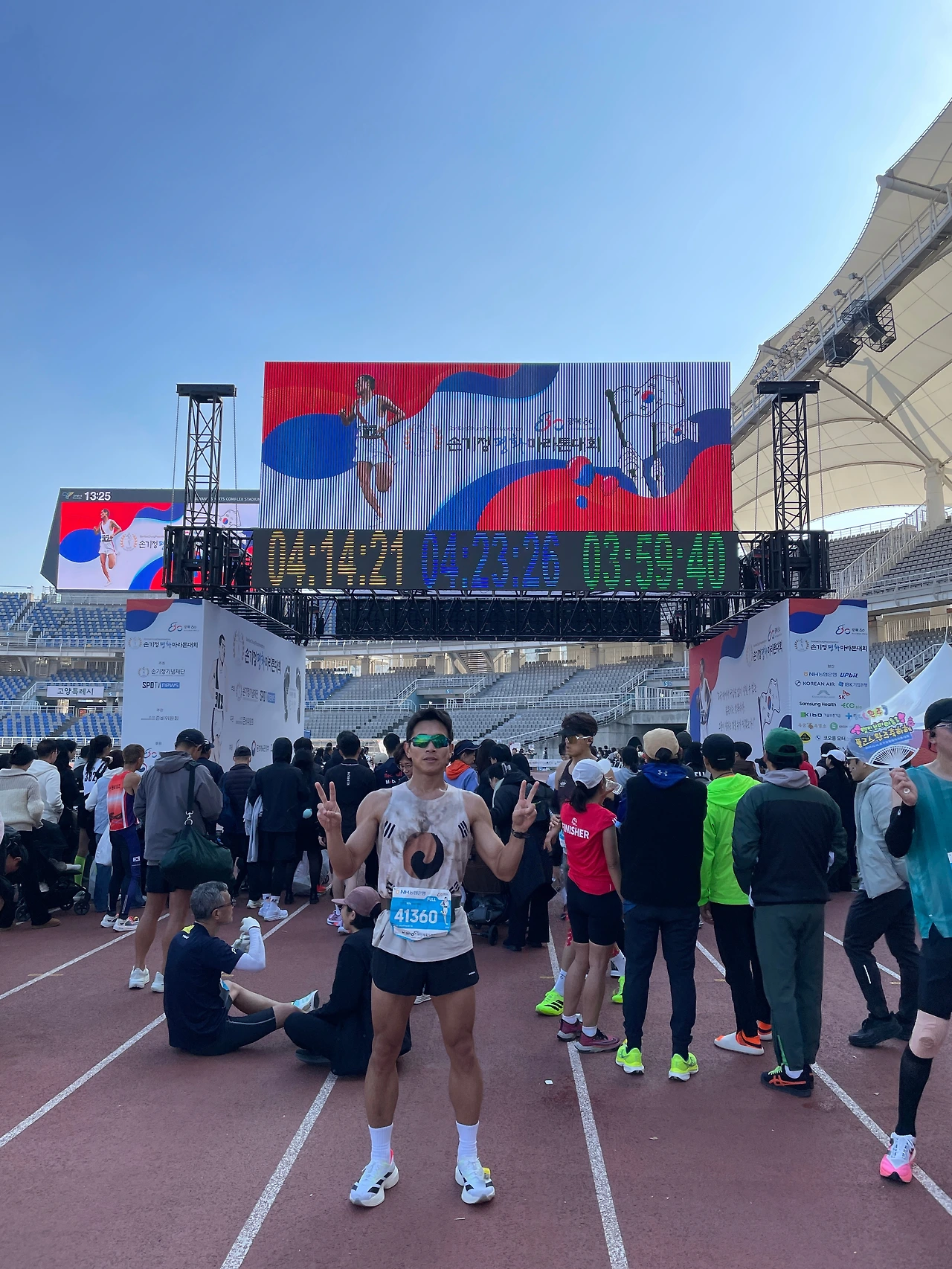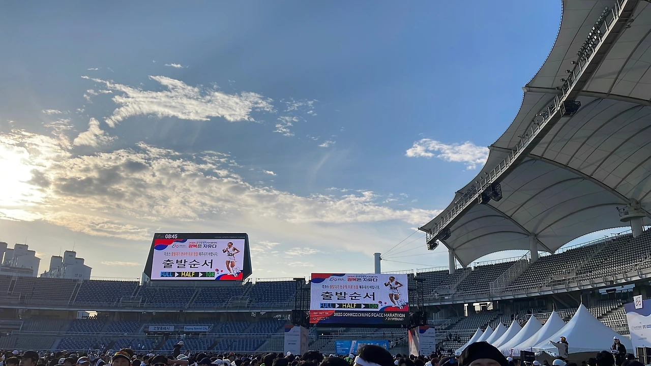수많은 인파가 아침 일찍부터 고양종합운동장을 가득 메웠다. 스트레칭과 내빈 소개를 마친 후 09:00에 카운트다운과 동시에 레이스를 시작했다. 첫 1km는 늘 병목현상으로 6분대로 시작한다는 마음으로 여유 있게 달렸다.
