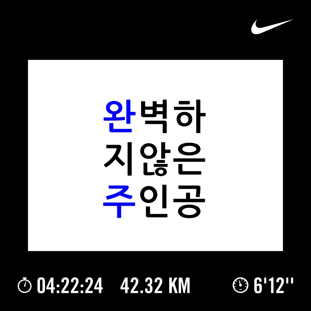 나 : 어차피 출발부터 도착까지 함께 완주하기로 약속했으니까 기록 신경 쓰지 말고, 풀코스 첫 참가에 같이 완주해요 형.