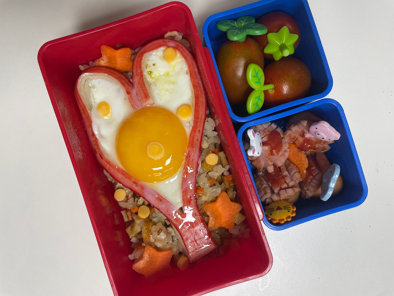 그런데 나에게 심판의 날이 왔다. 둘째 딸 어린이집에서 소풍을 간다며 도시락과 간식을 준비해야 한다는 공지를 받았다. 지금까지 아들, 딸 도시락을 아내가 준비했었는데 마침 아내가 야간 근무이기도 하고, 현재 나는 육아휴직인 상태이니 누가 봐도 내가 준비하는 것이 맞다. 집에 있는 '캐릭터 콩콩 도시락' 책을 얼른 1 회독했다. 내가 그나마 할 수 있는 레시피를 빠르게 확인 후 3가지를 선정했다. 딸에게 "내일 도시락 싸야 하는데 이거 3개 중에 골라주면 아빠가 만들어볼게", 아빠의 요리 실력을 눈치챈 딸은 3개 중에서도 가장 무난한 '하트 맛살 도시락'을 골랐다. 나도 내심 '하트 맛살 도시락'을 골라주길 바랐는데 역시 내 딸이다.