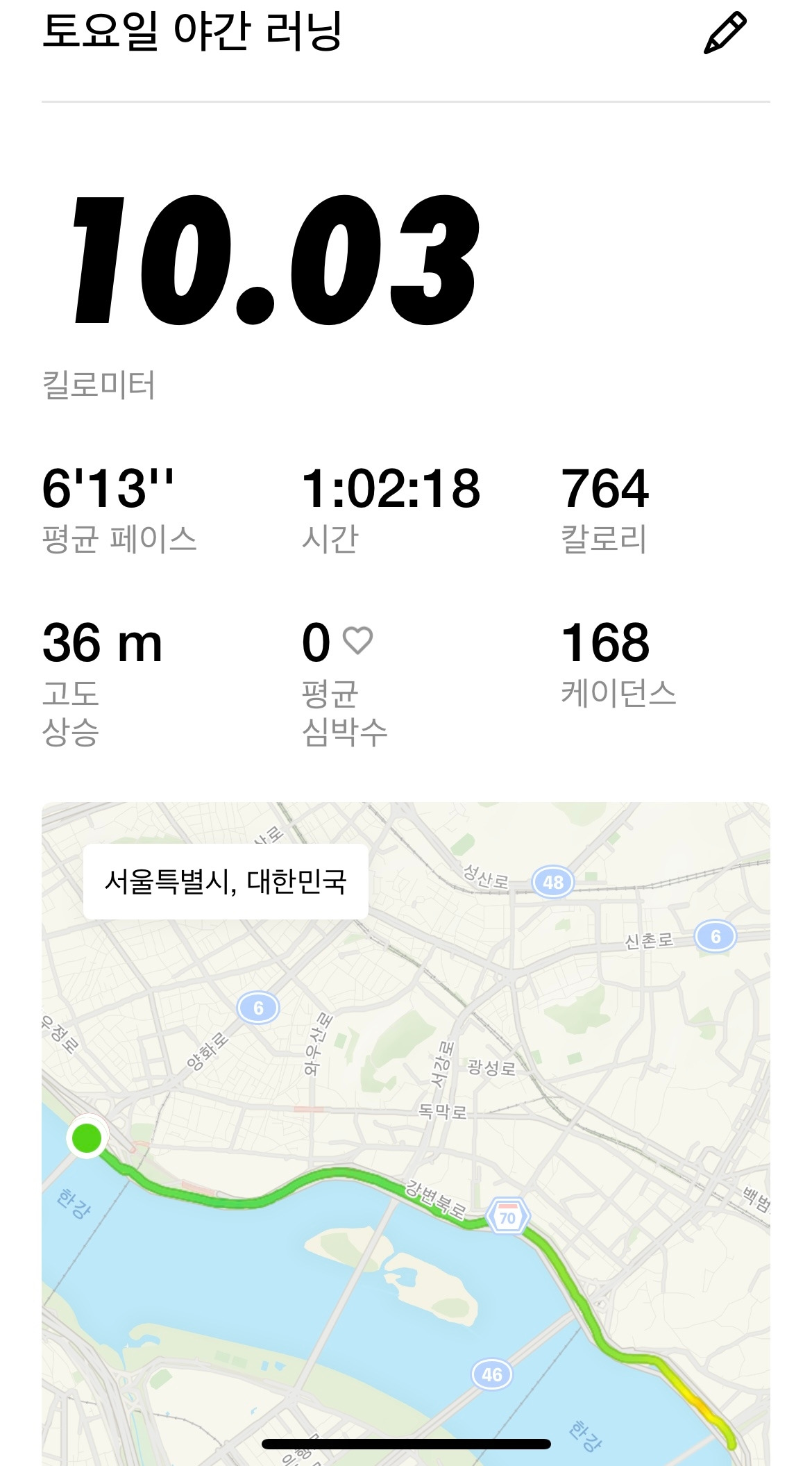 돼지뽈살이 소화되기도 전에 부랴부랴 10킬로미터를 뛰었다. 형들 덕분에 이렇게 토요일 밤에 한강에서 러닝도 해보고, 러닝에 이어 또 다 같이 턱걸이로 마무리를 했다. 이 모임 참 좋다.