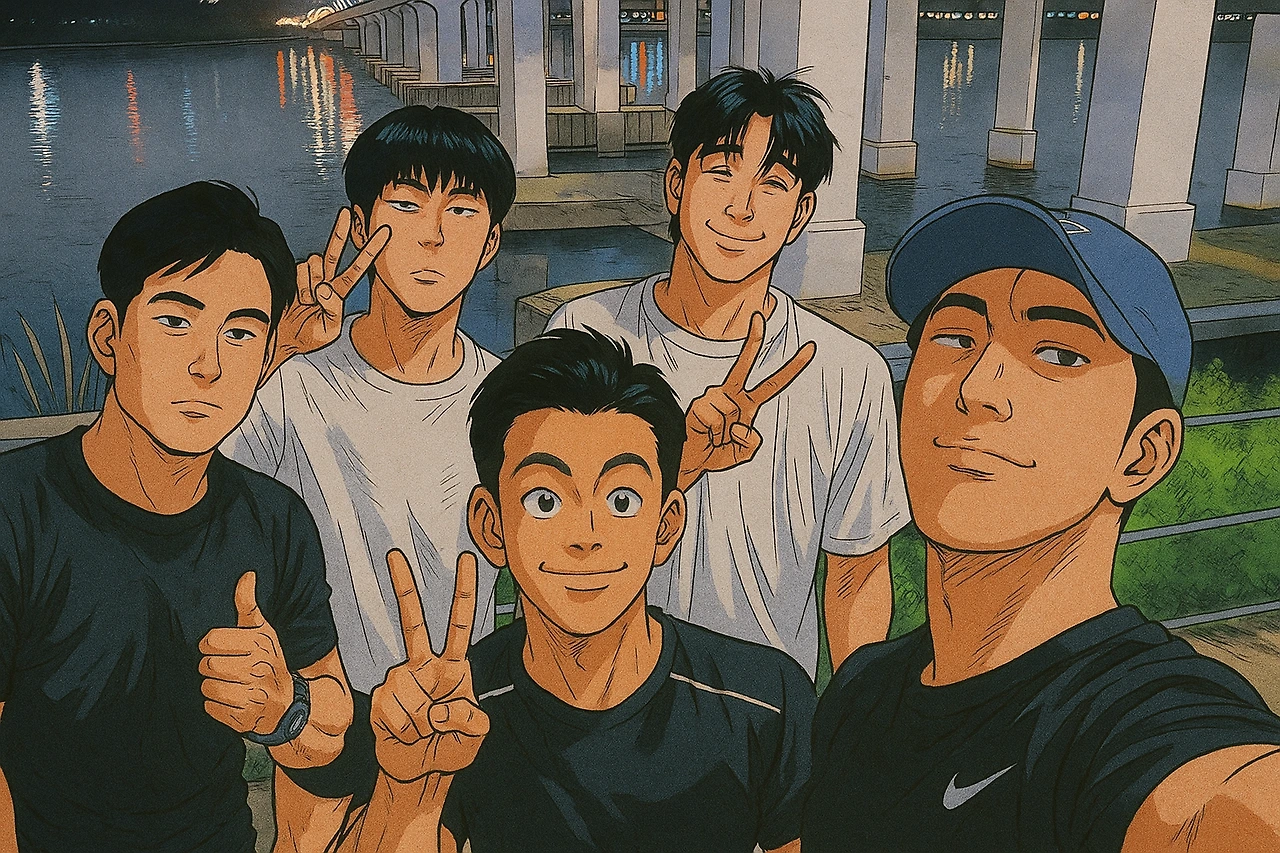 이번 모임에는 9명 중 5명이 모였다. 처음에는 7명이었으나 갑자기 사정이 생겨 5명만 모였다. 10년 전 생활반 모습 그대로 우리는 모이기 전부터 러닝 할 생각에 들떴다. “우리가 언제 이렇게 토요일 밤에 한강을 달려보겠어.”라며.
