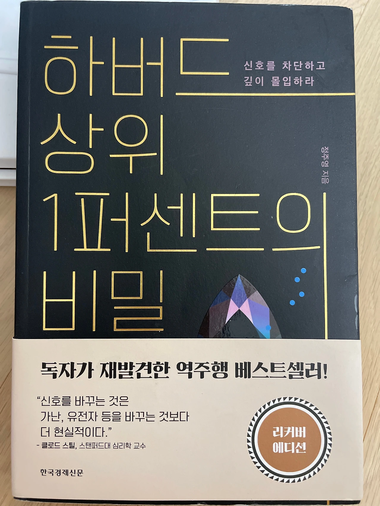 올해 4월부터 한 달에 100킬로미터를 달렸고, 지난달에는 처음으로 200킬로미터를 달렸다. 나름 꾸준히 달린 덕분에 체력도 향상되었을 것이다. 하지만 이번 10킬로미터를 47분에 뛴 것은 현재 읽고 있는 ‘하버드 상위 1퍼센트의 비밀’이라는 정주영 작가의 책을 읽고 기록을 세운 것이라고 생각한다.