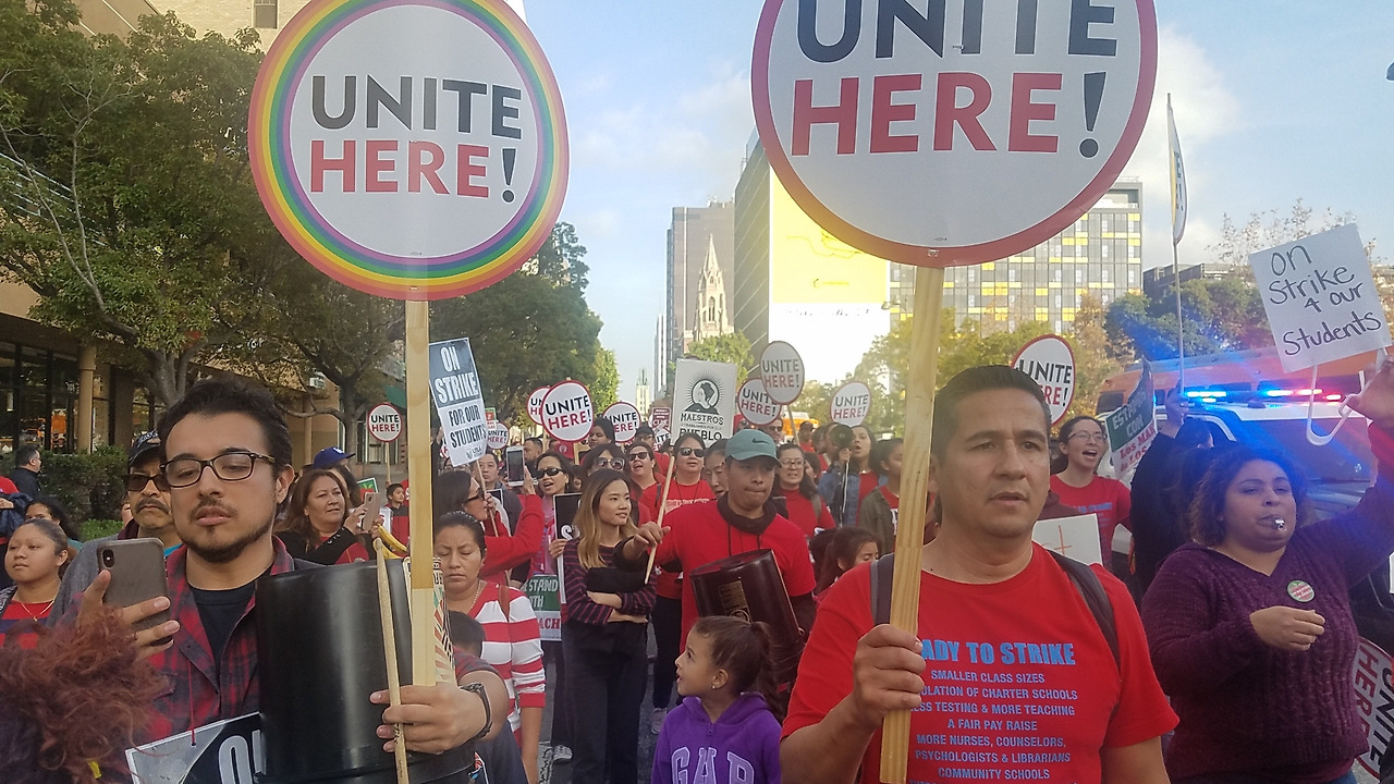 UTLA 소속 교사들은 현 공교육이 당면한 여러 이슈들에 대해 피켓을 만들어 행진을 하고 다양한 구호를 외치며 학부모, 학생, 시민들의 이해와 참여를 호소했다.길거리를 지나는 많은 운전자들은 경적을 울리고 손을 흔들며 지지를 표했고 학부모와 시민단체들은 물과 음식, 핫팩 등을 기증하고 함께 행진하며 교원노조의 파업에 동참했다.