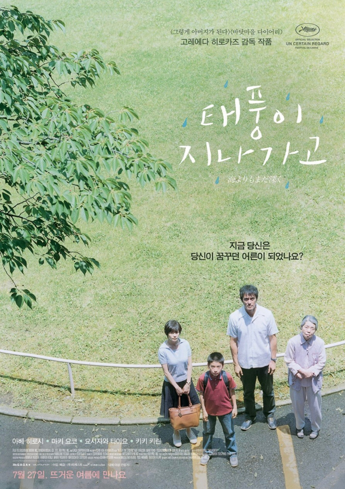 <태풍이 지나가고>에 와서는 이런 점이 훨씬 더 명백하게 그려진다. <태풍이 지나가고>는 실패한 예술가가 주인공이다. 젊은 시절 문학상을 수상한 주목받는 작가였던 료타는 이후 10년간 단 한 권의 책도 내지 못한 채 현재는 ‘탐정’이라는 이름 하에 흥신소에서 바람피우는 남녀를 몰래 촬영하는 것으로 생계를 유지하는 중이다. 료타는 이혼한 아내의 마음을 돌리기 위해 갖은 애를 써보지만 아내는 이런 료타에게 비바람이 몰아치는 놀이터에서 조용히 말한다. “이제 마음 정했으니까, 편히 갈 수 있게 해 줘. 알아들었어?” 료타는 대답한다. “알아들었어. 알고 있었어.” 사이가 좋았던 옛 시어머니의 “왜 이렇게 되어버린 걸까?” 하는 회한 섞인 눈물로도 아내의 마음을 돌릴 수는 없다. 그렇게 고레에다 히로카즈 감독은 말한다. 안 되는 건 안 되는 거예요. 세상에는 그런 일들도 있어요. 이제 단념하고 받아들이세요.