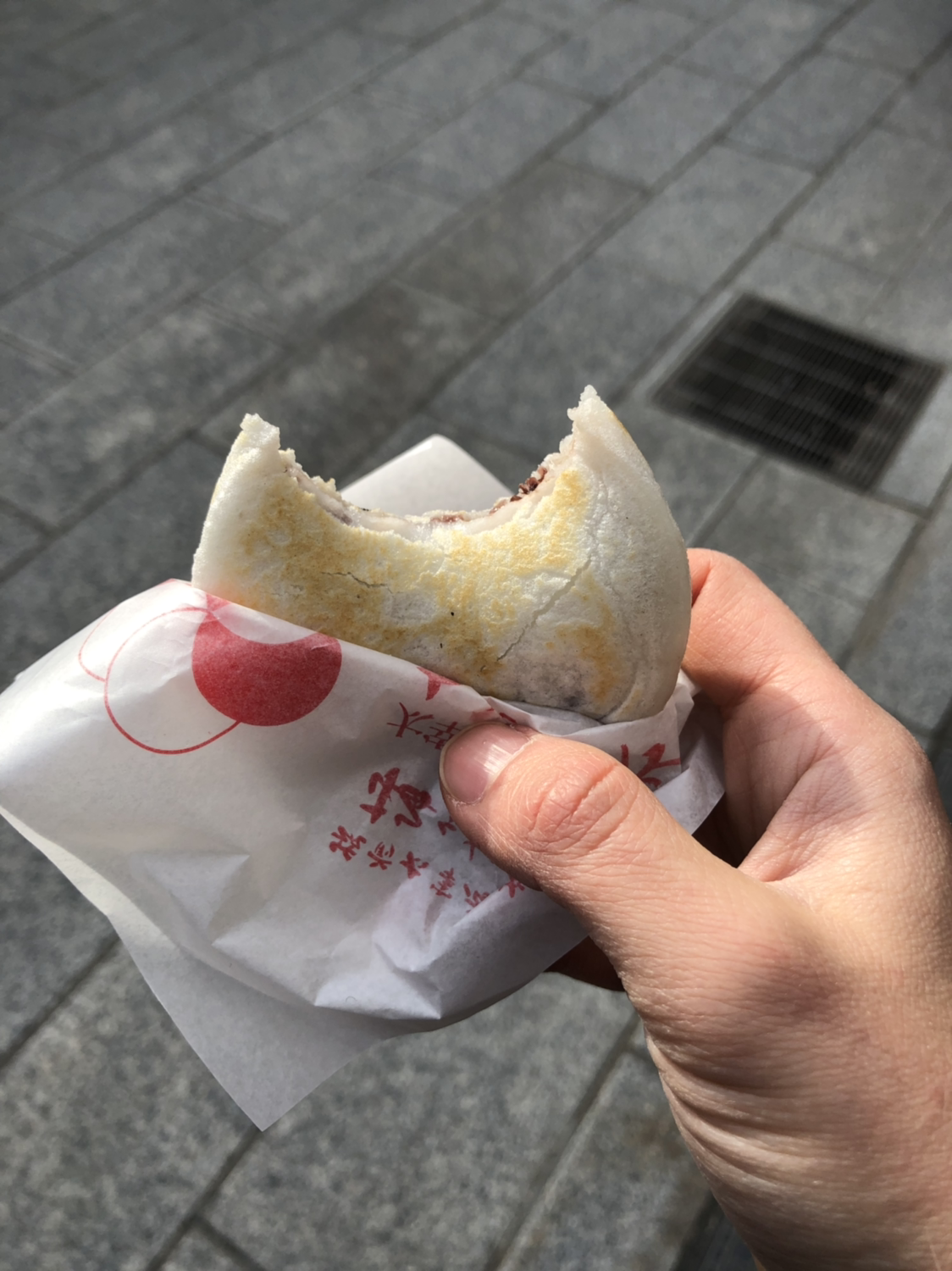 신사 앞 상점가에서는 간단한 간식류를 많이 팔고 있었다. 본래 여행 중이라도 삼시세끼 외에는 잘 안 먹는 편인데 성향도 조금씩 변하는지, 호기심이 들었다. 사람들이 많이 들고다니는 손바닥만한 동그란 빵을 하나 먹어봤는데 일본떡 안에 팥앙금을 넣어 틀에다 구운 것이었다. 겉은 바삭바삭한데 떡은 우리나라 인절미보다 훨씬 부드럽고 밀도가 낮은 느낌이라 입안에서 금방 녹았다. 생각했던 것보다 훨씬 맛있었다.